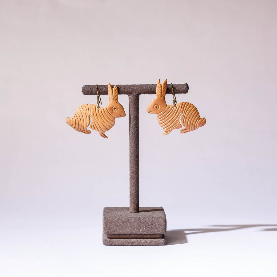 Fine brown hand carved wooden earrings made of using natural wood. These wooden earrings has been carved by the master artisans of Rajasthan.