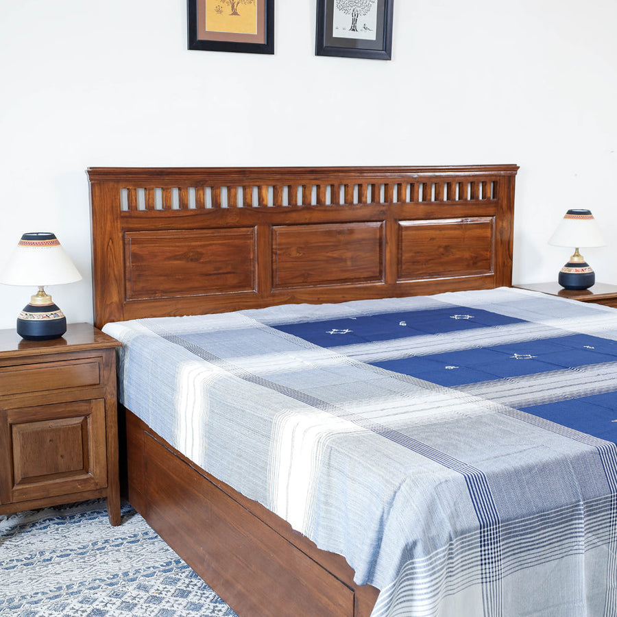 Fine quality kutch weave pure hand-loom cotton bed-cover made by master artisans in Kutch region of Gujarat. The Bed-cover is woven with traditional Kutchi motifs. Soft textured.