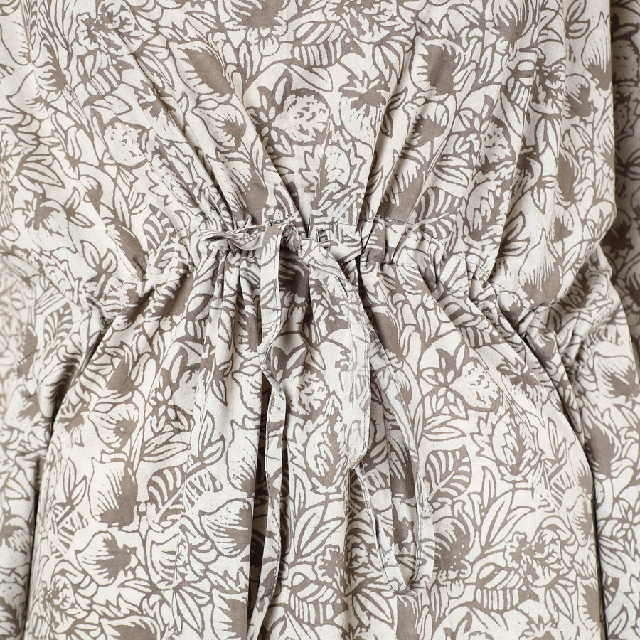 Fine quality hand block printed cotton long kaftan. A traditional kaftan or caftan is an ankle-length garment with long, flowing sleeves. It has an adjustable drawstring waist. These loose-fitting cotton kaftans are enhanced by a soft touch and beautiful hand prints. This dress will allow you to move with ease and comfort. The drawstring waist tie will give you the freedom to customize the fit to suit your unique shape.