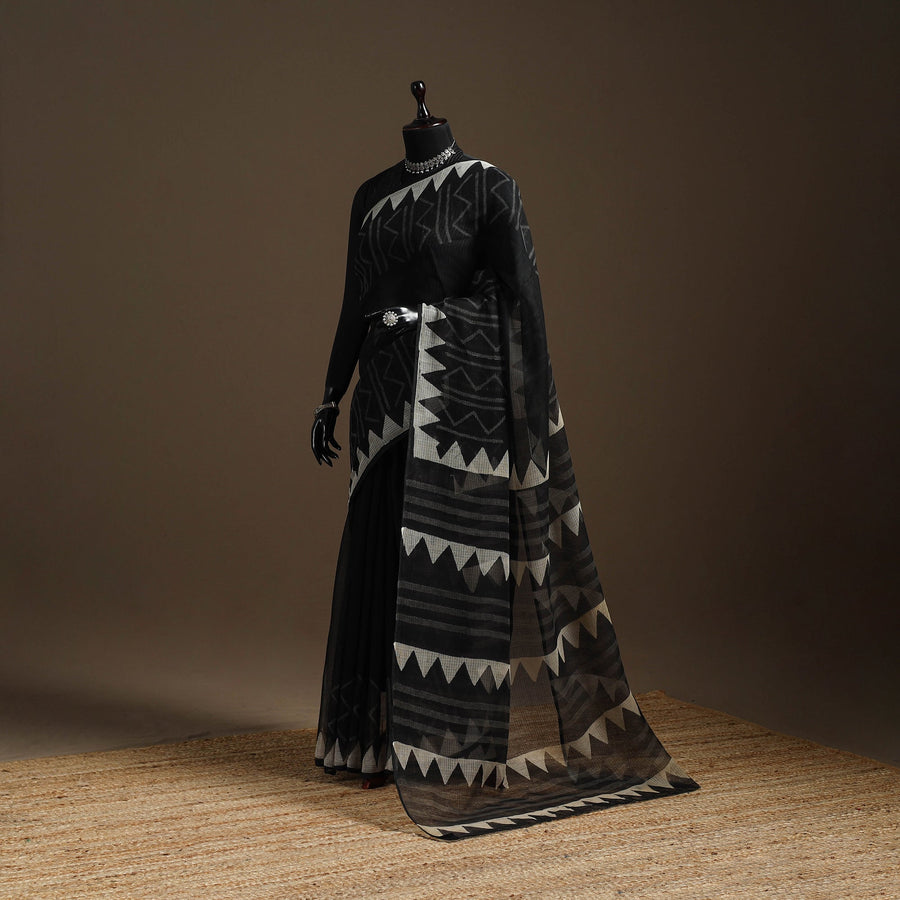 Fine quality sanganeri hand block printed kota doria cotton saree. Sanganeri is a hand-block printing technique originating from Sanganer, a village in the southern part of Jaipur, Rajasthan. Kota doria is a blend of strong cotton and lustrous silk yarns. The Doria or the threads are finely interweaves to make the check patterns. Its lightweight and sheer texture giving an exquisite grace and elegance of its own.