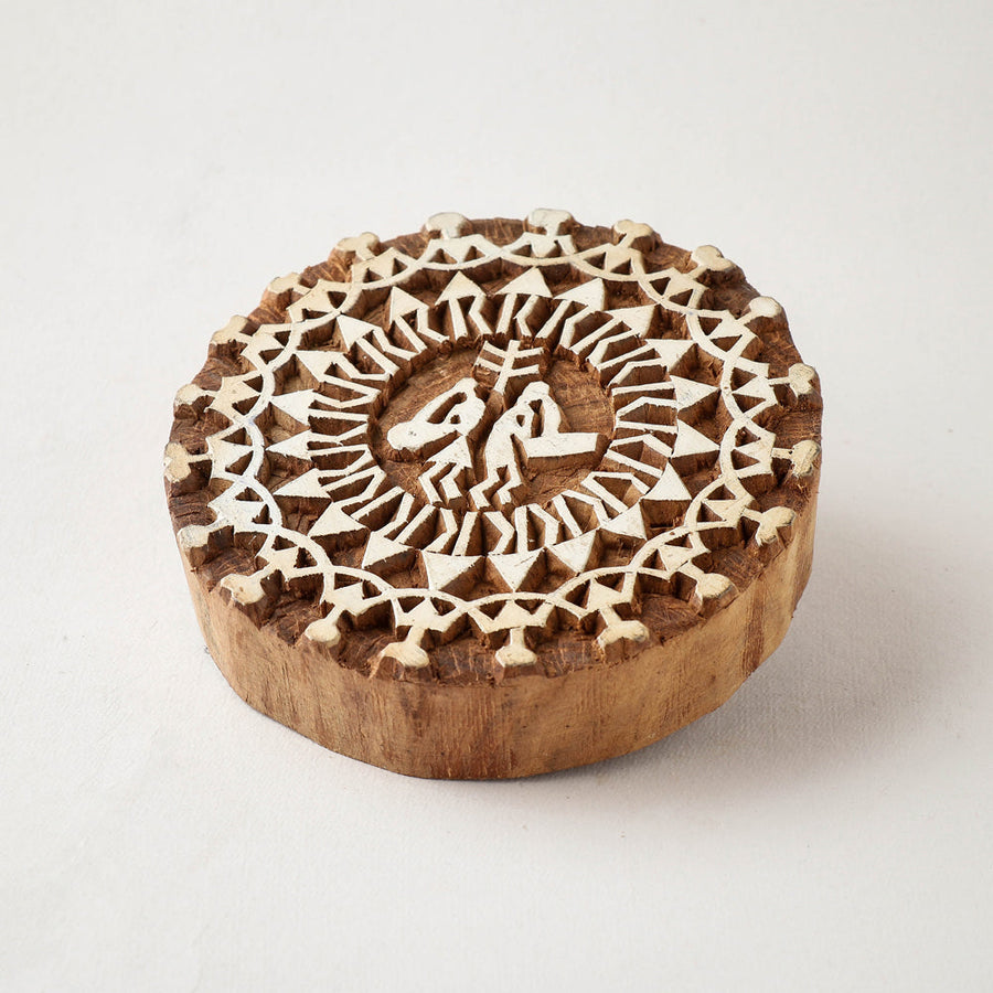 Traditional printing wooden block intricately carved on natural sheesham wood using traditional carving skills and techniques by master wood block carver. It is an actual block used to create designs on the traditional textiles, paper, canvas, etc. and can also be used as decoration.