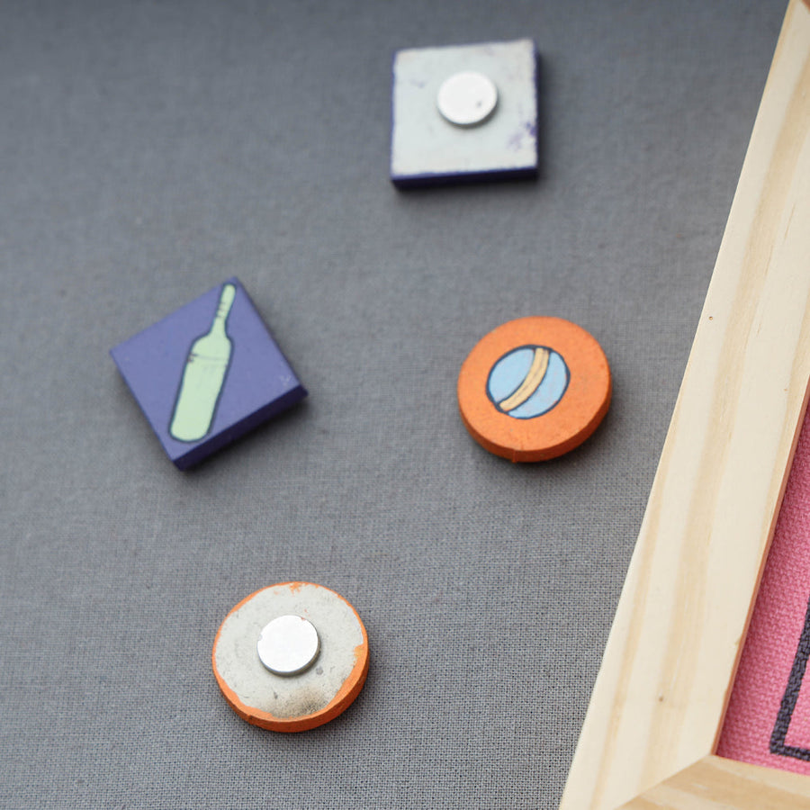 Handpainted miniature painting pine wood magnetic tic tac toe by Rajesh & Monali. Acrylic colours used.
