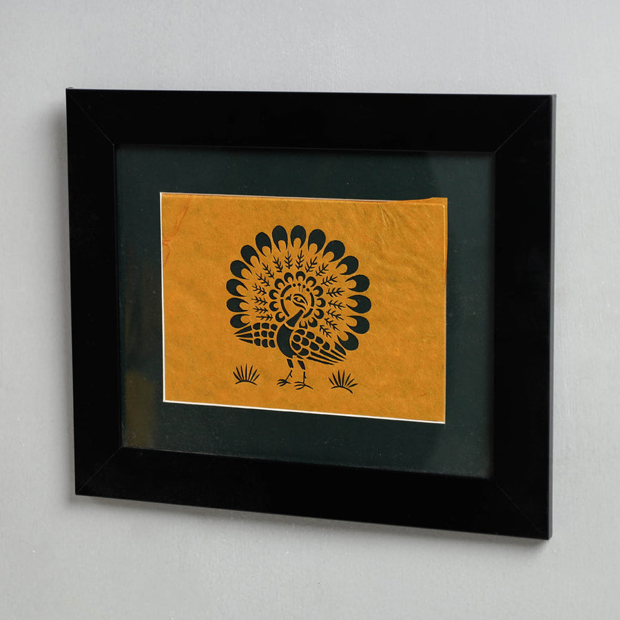 This original sanjhi artwork/painting made of handmade papers and framed with a fiber frame. Sanjhi Art from Mathura, is a truly unique craft form that features exquisite designs and intricate picture motifs, cut into paper. Craftsmen use specially designed scissors to accomplish this process.