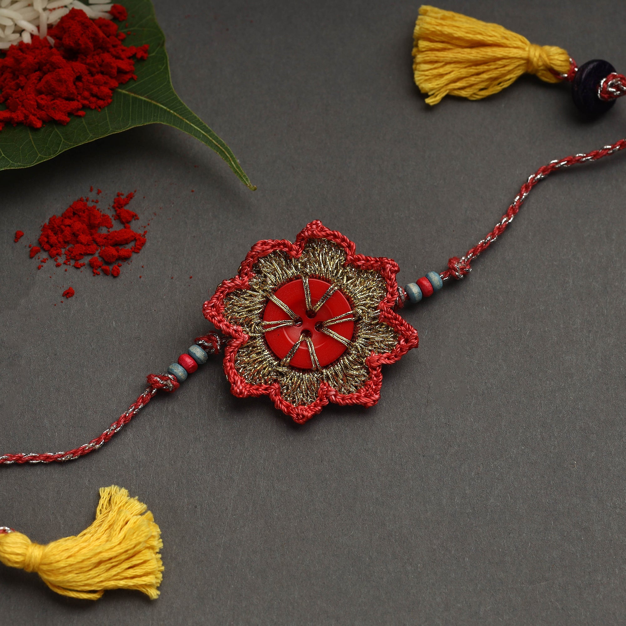 Colourful handmade crochet work rakhi made from cotton & viscose silk threads handcrafted for the very special khatta meetha bond between brother and sister. This rakhi is handcrafted by women artisans of Gaya, our thread Rakhi’s are made with a lot of love and care for you and the environment. Rakhi Recycling Tips : Make your own brooch with the pin, reuse it as a curtain tie or a funky choker necklace, add to your bag as a lucky charm, stitch it with your skirt as a tassel. There are a number of creative ways to repurpose this gorgeous keepsake.