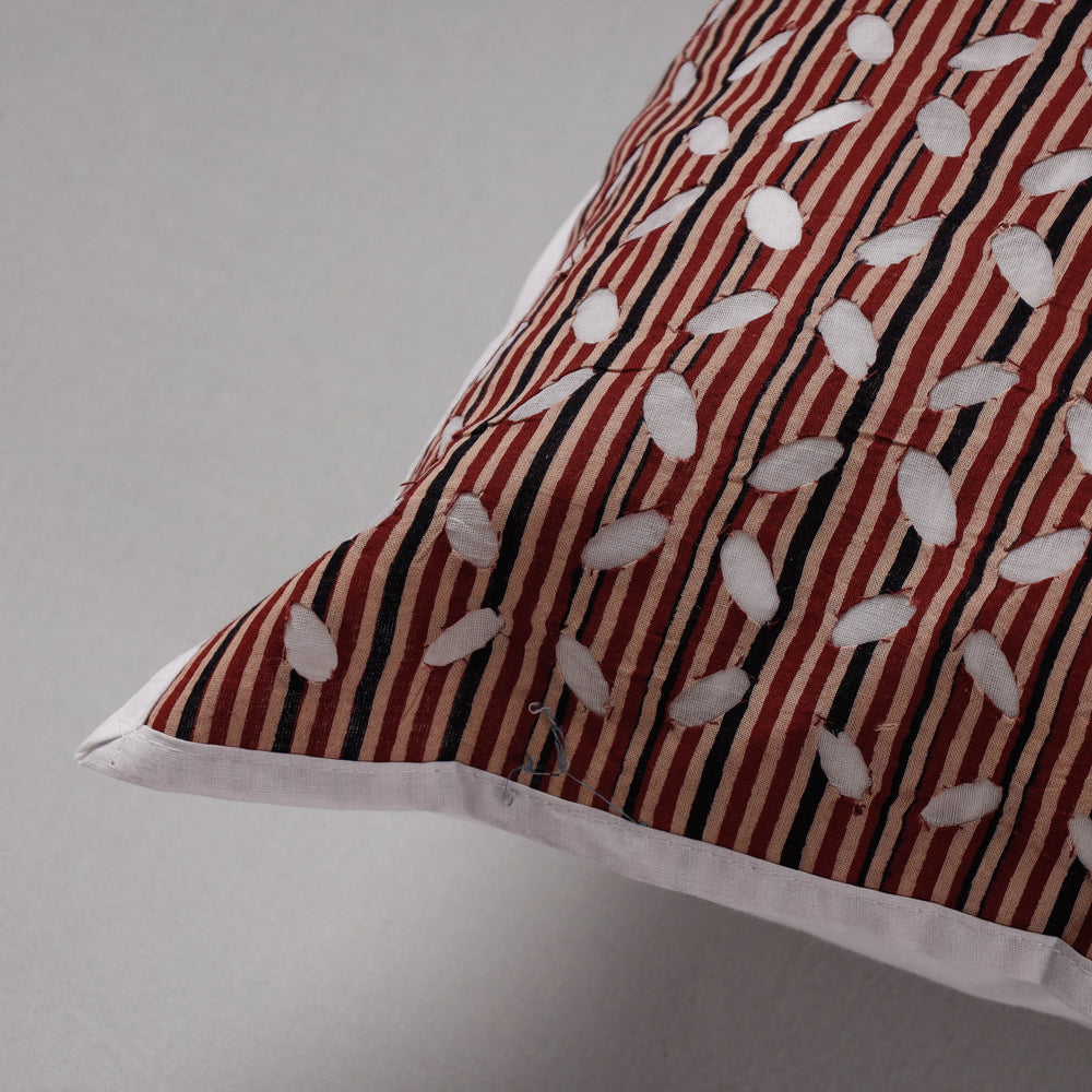 Brown - Cutwork Cotton Applique Cushion Cover (16 x 16 in)