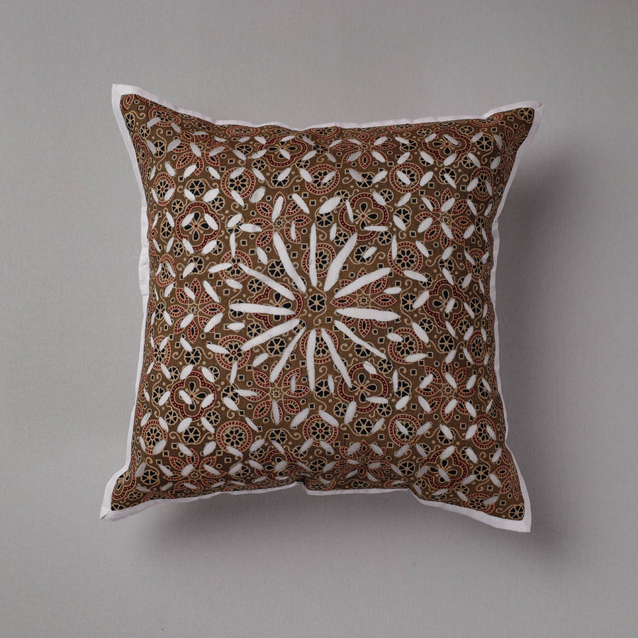 Brown - Cutwork Cotton Applique Cushion Cover (16 x 16 in)