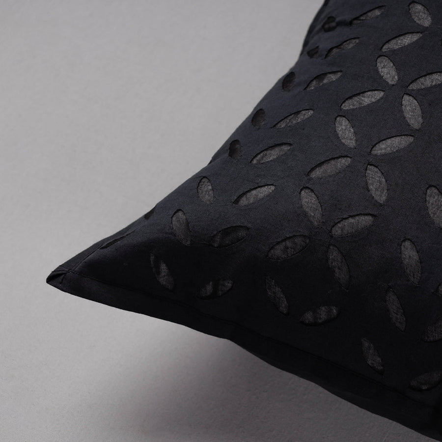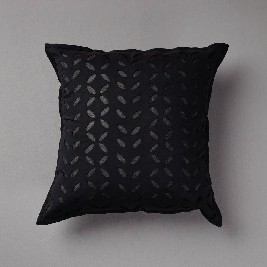 Black - Cutwork Cotton Applique Cushion Cover (16 x 16 in)