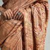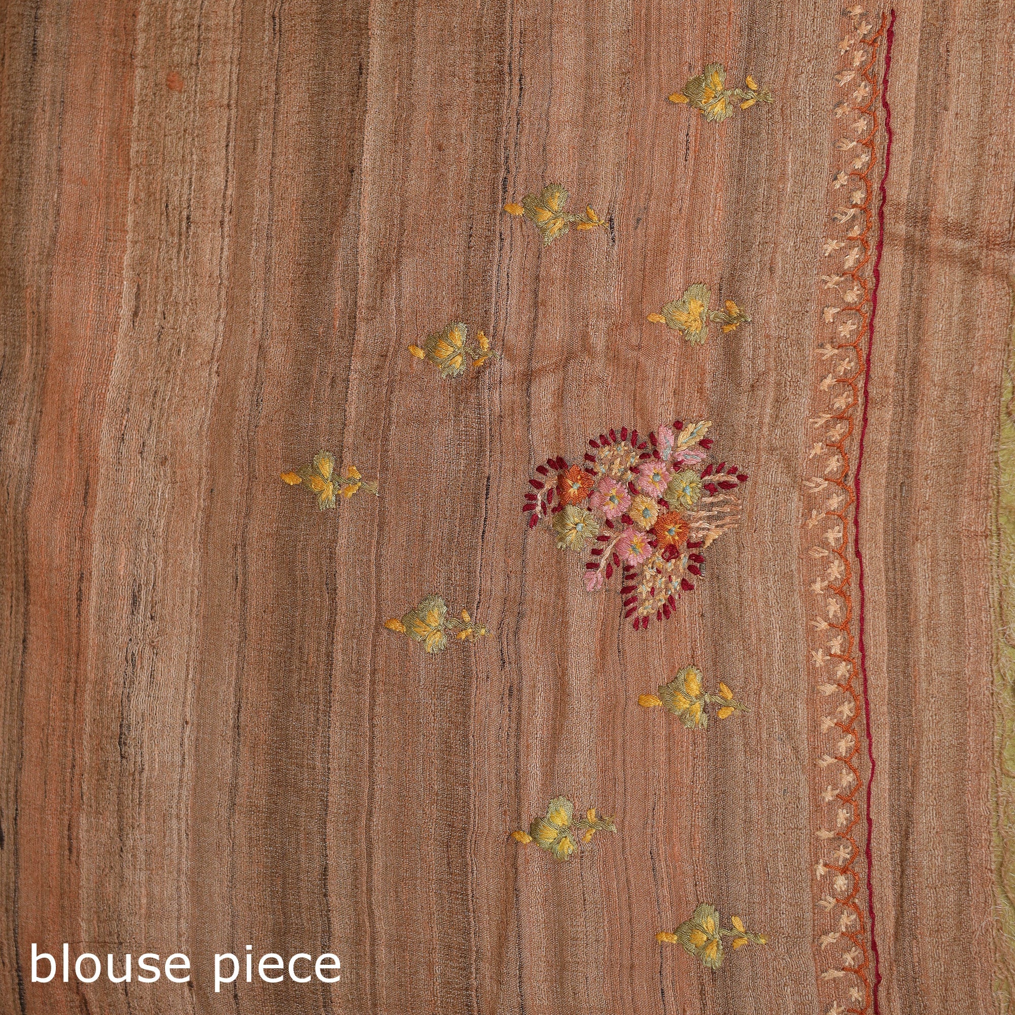 Fine brown kashida thread work hand embroideredhandloom tussar silk saree by Zahoor Ahmed from Harwan, Kashmir.