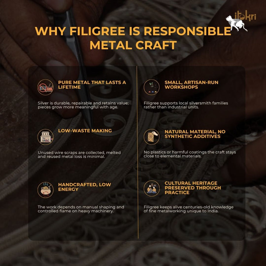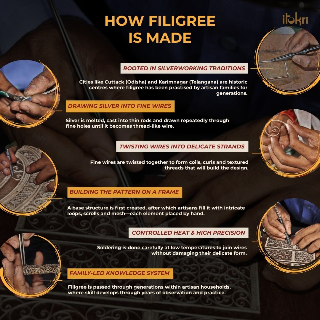 Filigree is an ancient metalwork technique dating back over 5,000 years, involving delicate twisting of gold or silver wires into intricate lace-like designs, widely used in jewelry and decor.