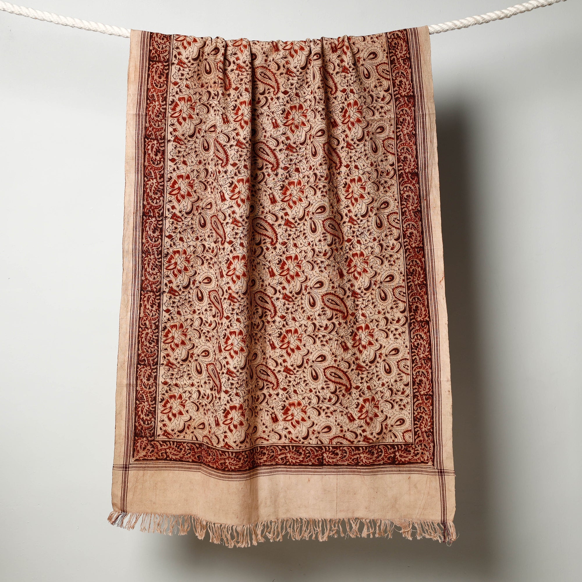 Fine quality original pedana kalamkari hand block printed natural dyed handloom pure cotton towel crafted by the skillful artisans of Pedana. Showcasing an assortment of hand block printed motifs inspired by traditional kalamkari painting. Kalamkari is the earliest and more complex techniques of block-printing.