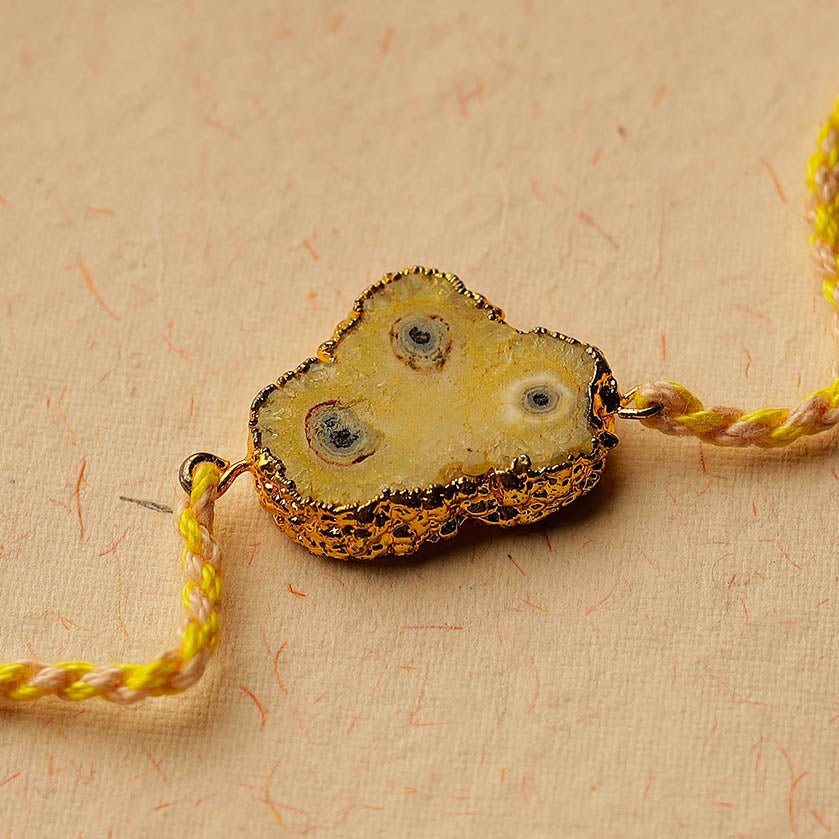 Colourful handmade natural agate stone rakhi handcrafted for the very special khatta meetha bond between brother and sister. By Purchasing Rakhi from iTokri you have proudly associated yourself with our artisan support initiative which brings happiness to more than 10000 families across India. Thanks so much!