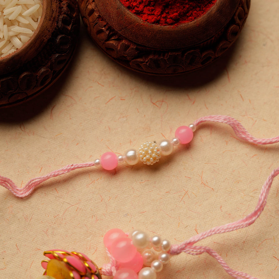 Colourful handmade beadwork rakhi & lumba set handcrafted for the very special khatta meetha bond between brother and sister.