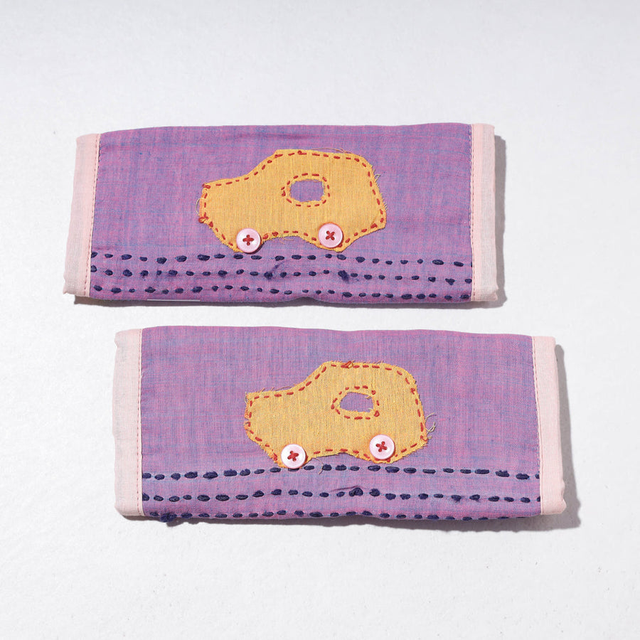 Fine quality purple cotton fridge handle / seat belt cover textured with handmade textiles of India.