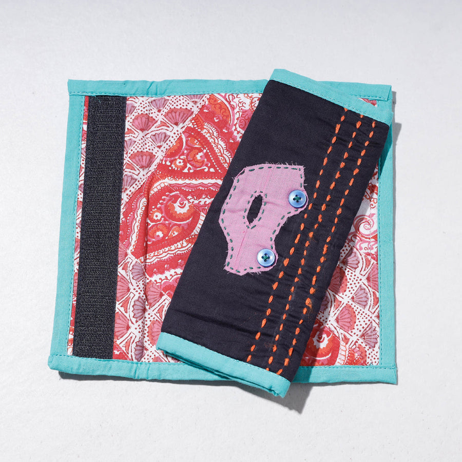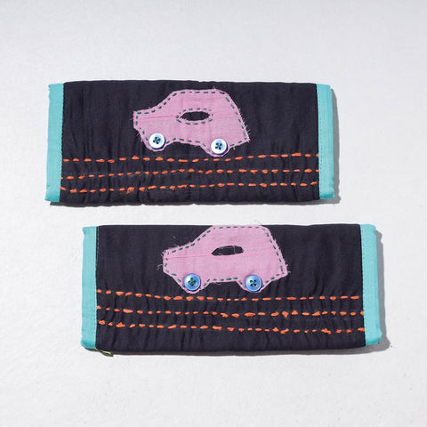 Fine quality black cotton fridge handle / seat belt cover textured with handmade textiles of India.