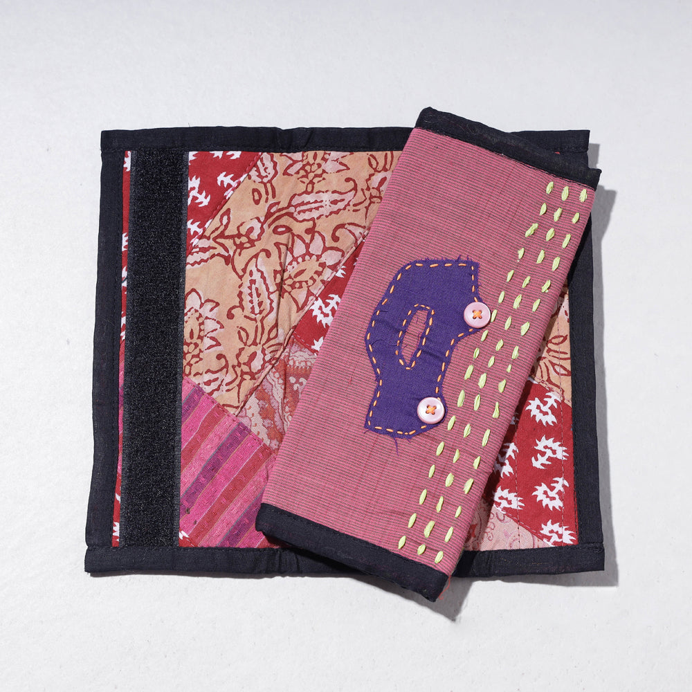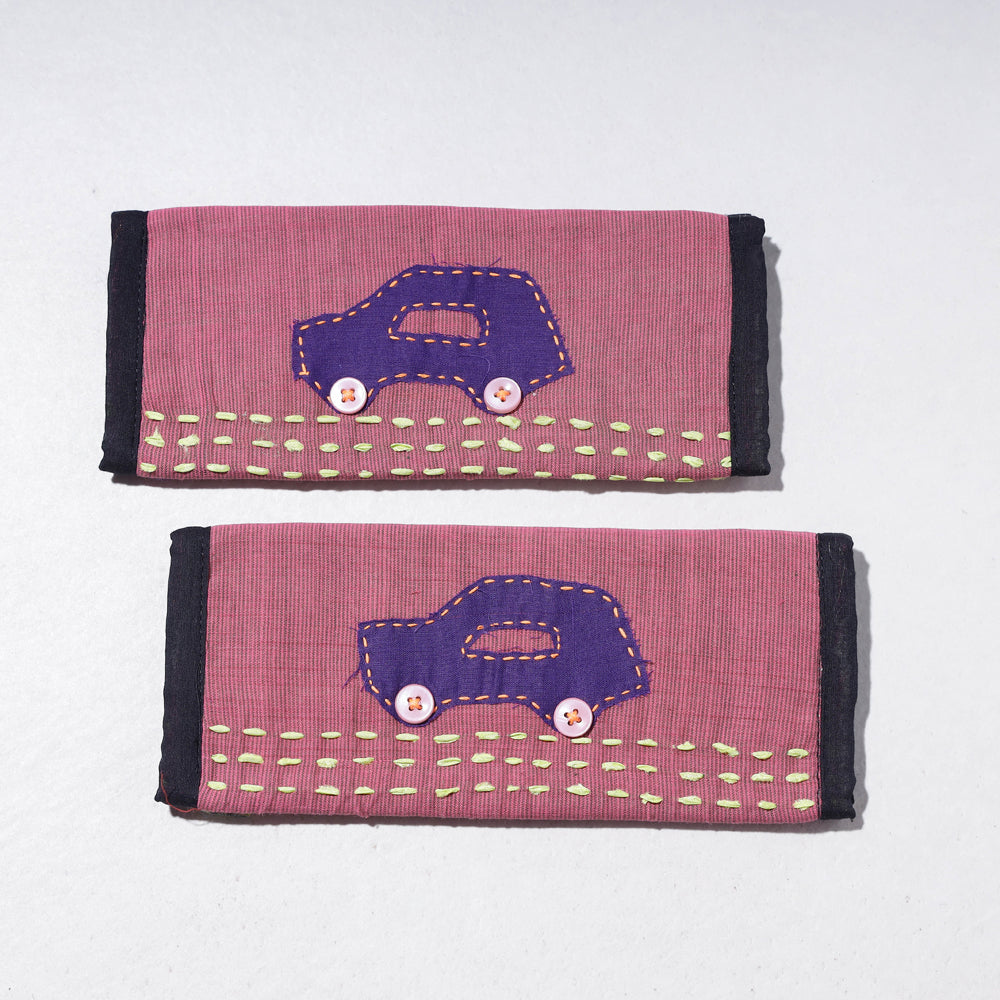 Fine quality pink cotton fridge handle / seat belt cover textured with handmade textiles of India.