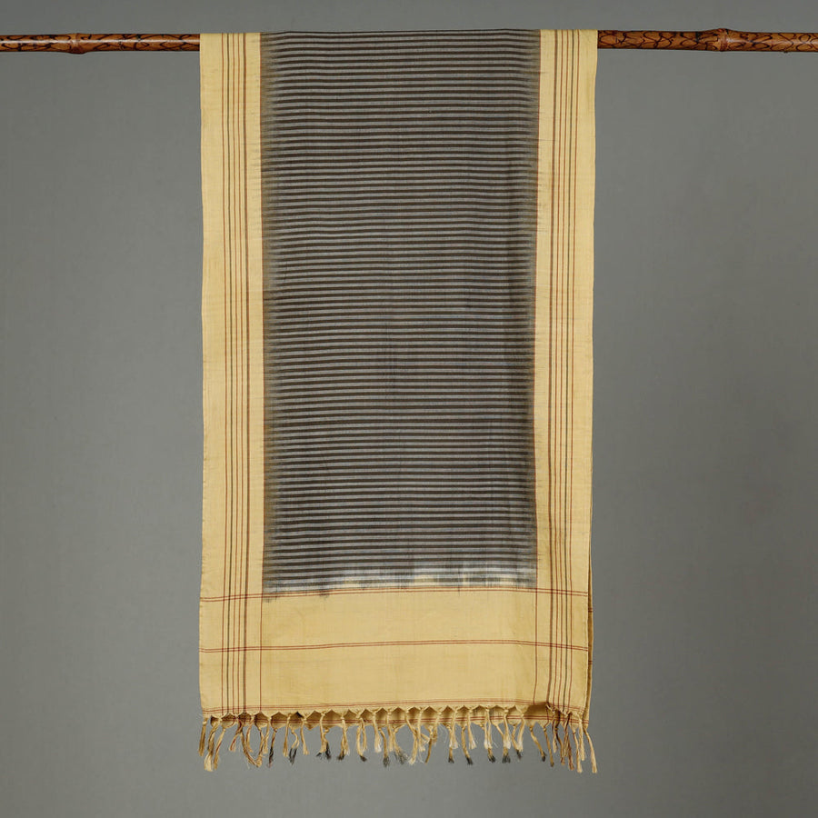 Fine quality ikat weave natural dye handloom cotton stole with tassels. Ikat (Ikkat) is a dyeing technique used to pattern textiles that employs a resist dyeing process similar to tie-dye on either the warp or weft fibers prior to dyeing. Tailor made soulful clothing textured with handmade textiles of India. This classic stole acts as the perfect add-on to a casual look.