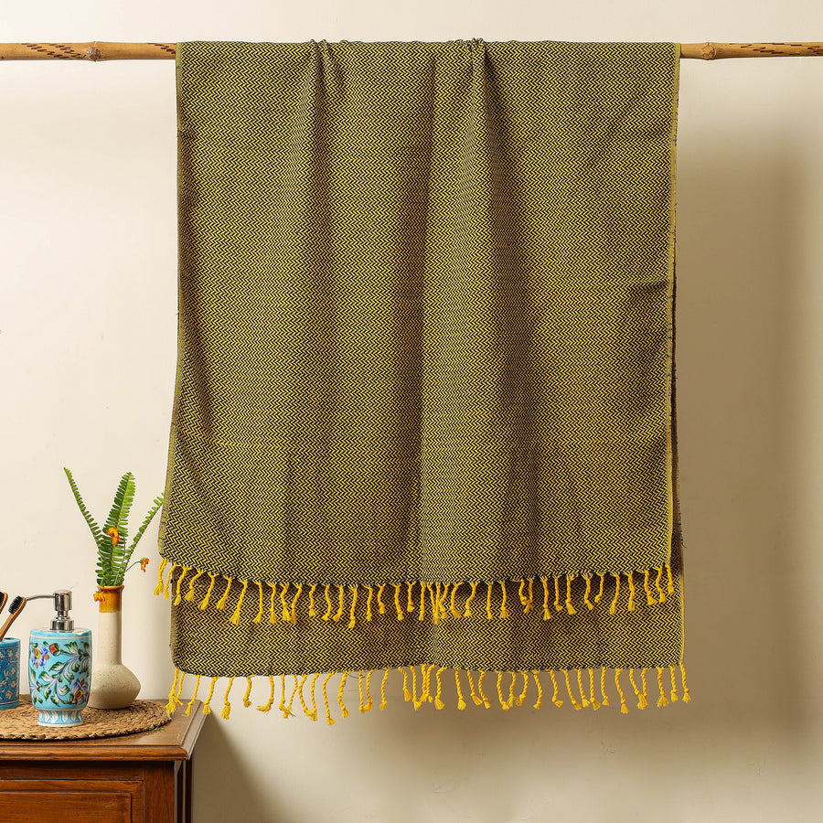 Yellow - Bijnor Pure Handloom Cotton Double Bed Sheet (108 x 90 in) 02