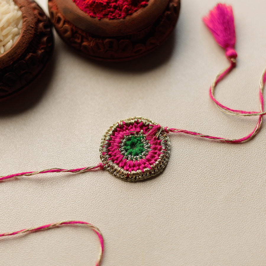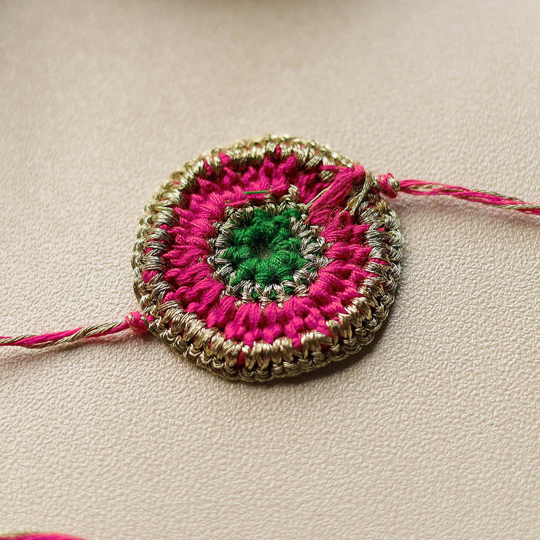 Colourful crochet work rakhi by Abira Creations handcrafted for the very special khatta meetha bond between brother and sister. By Purchasing Rakhi from iTokri you have proudly associated yourself with our artisan support initiative which brings happiness to more than 10000 families across India. Thanks so much!