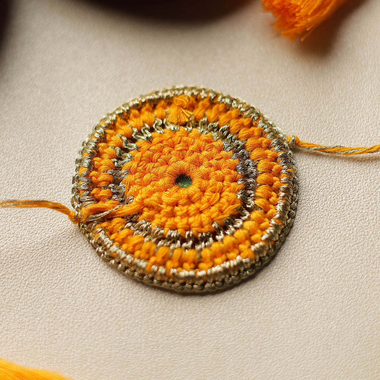 Colourful crochet work rakhi by Abira Creations handcrafted for the very special khatta meetha bond between brother and sister. By Purchasing Rakhi from iTokri you have proudly associated yourself with our artisan support initiative which brings happiness to more than 10000 families across India. Thanks so much!
