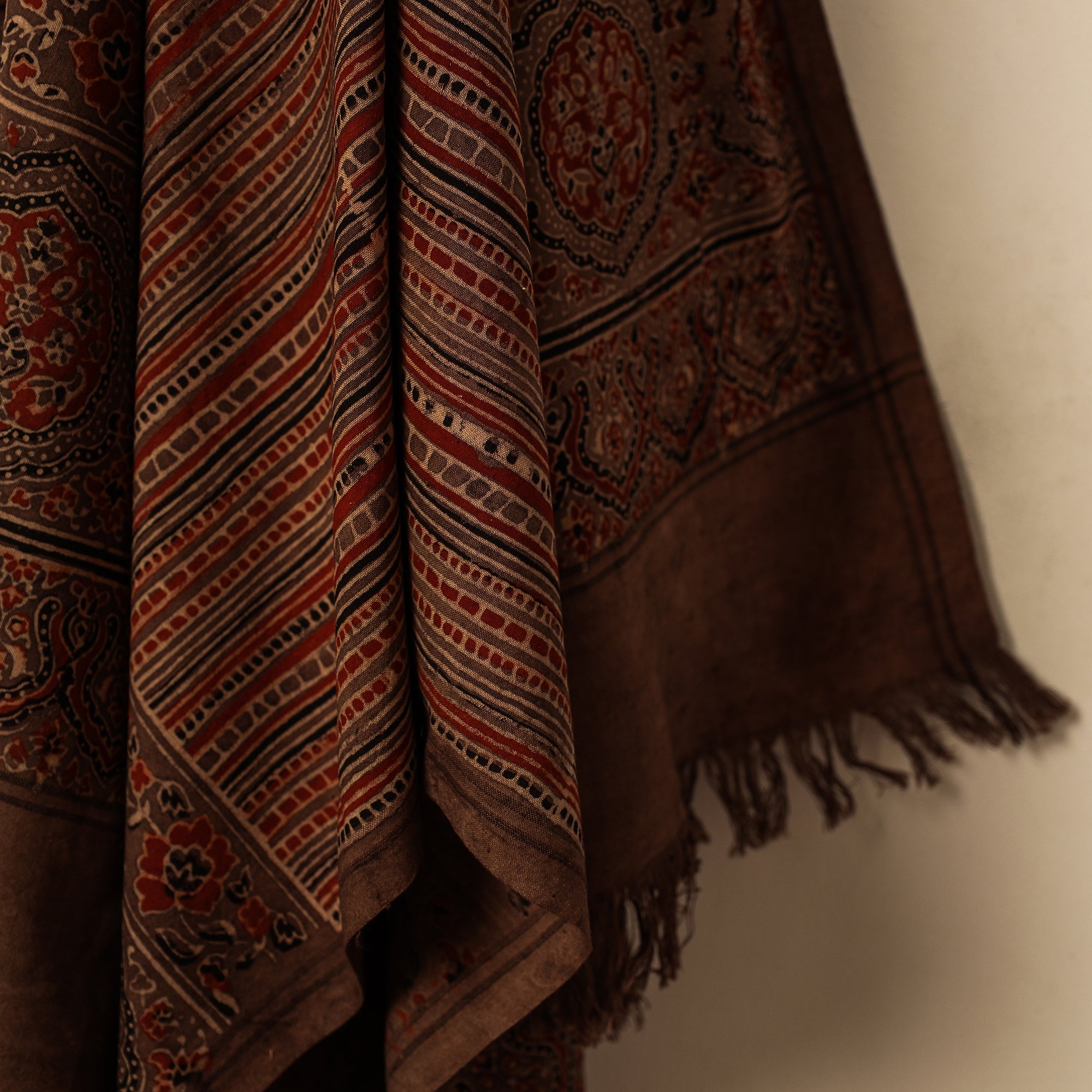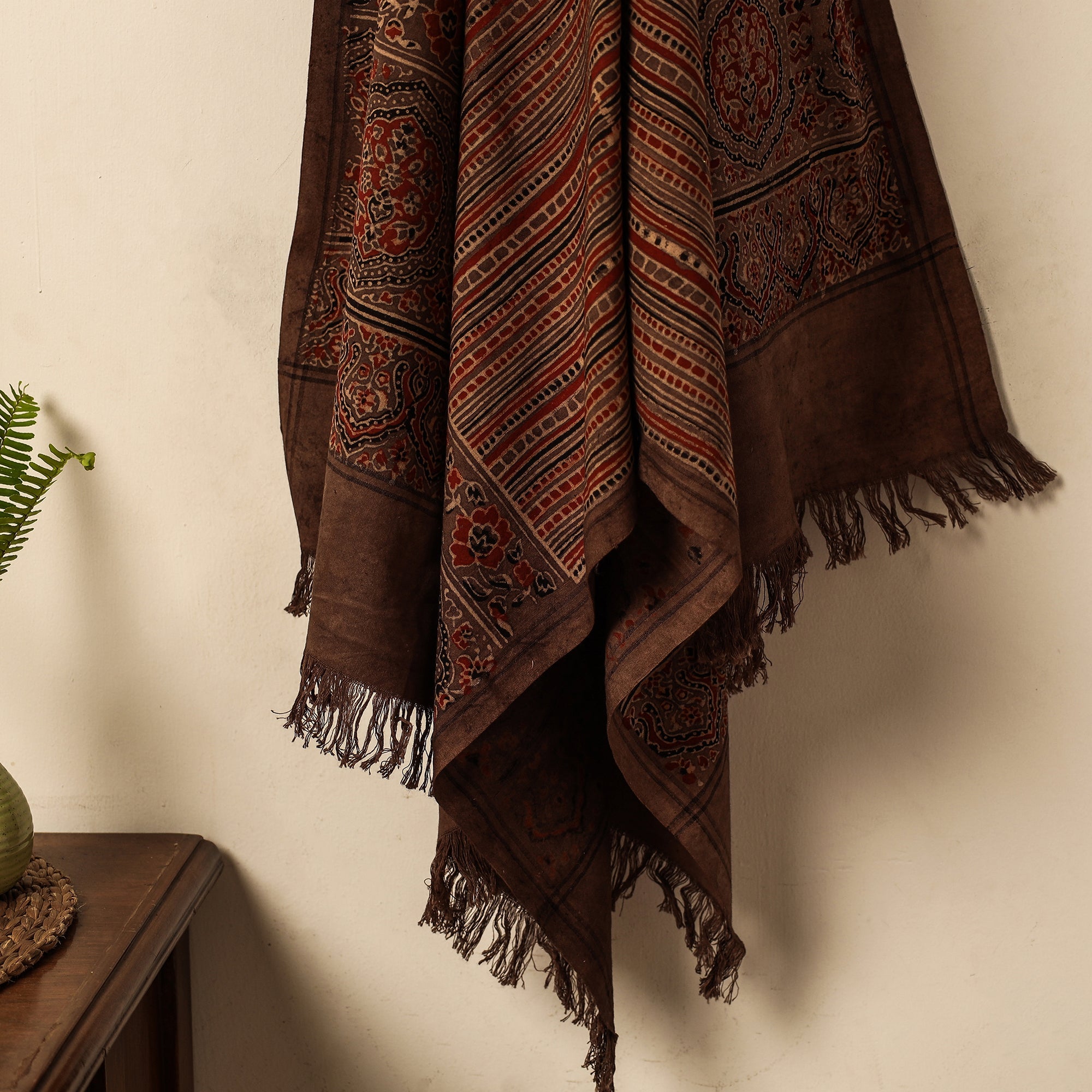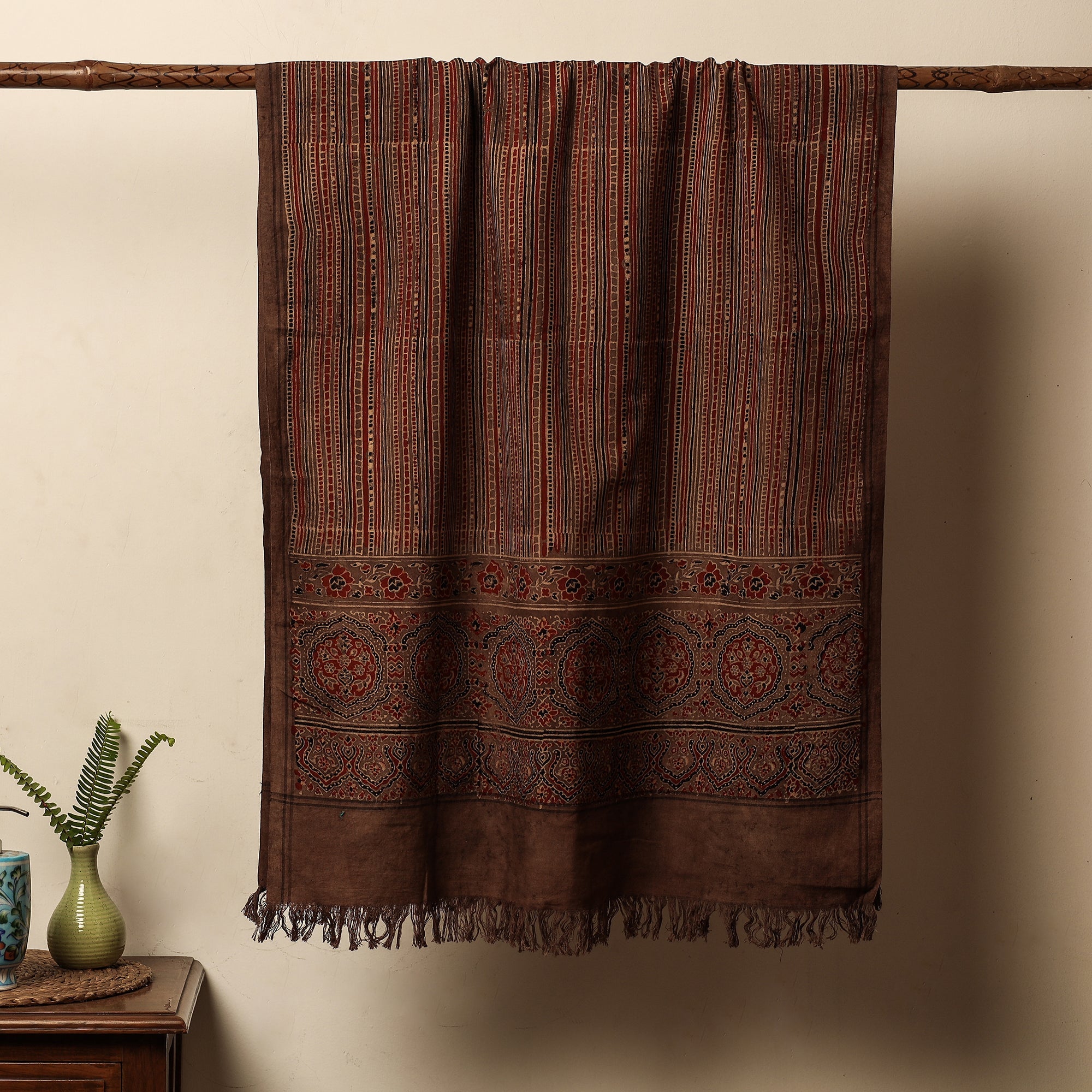 • Brown Block Print Cotton Ajrakh Handloom Towel