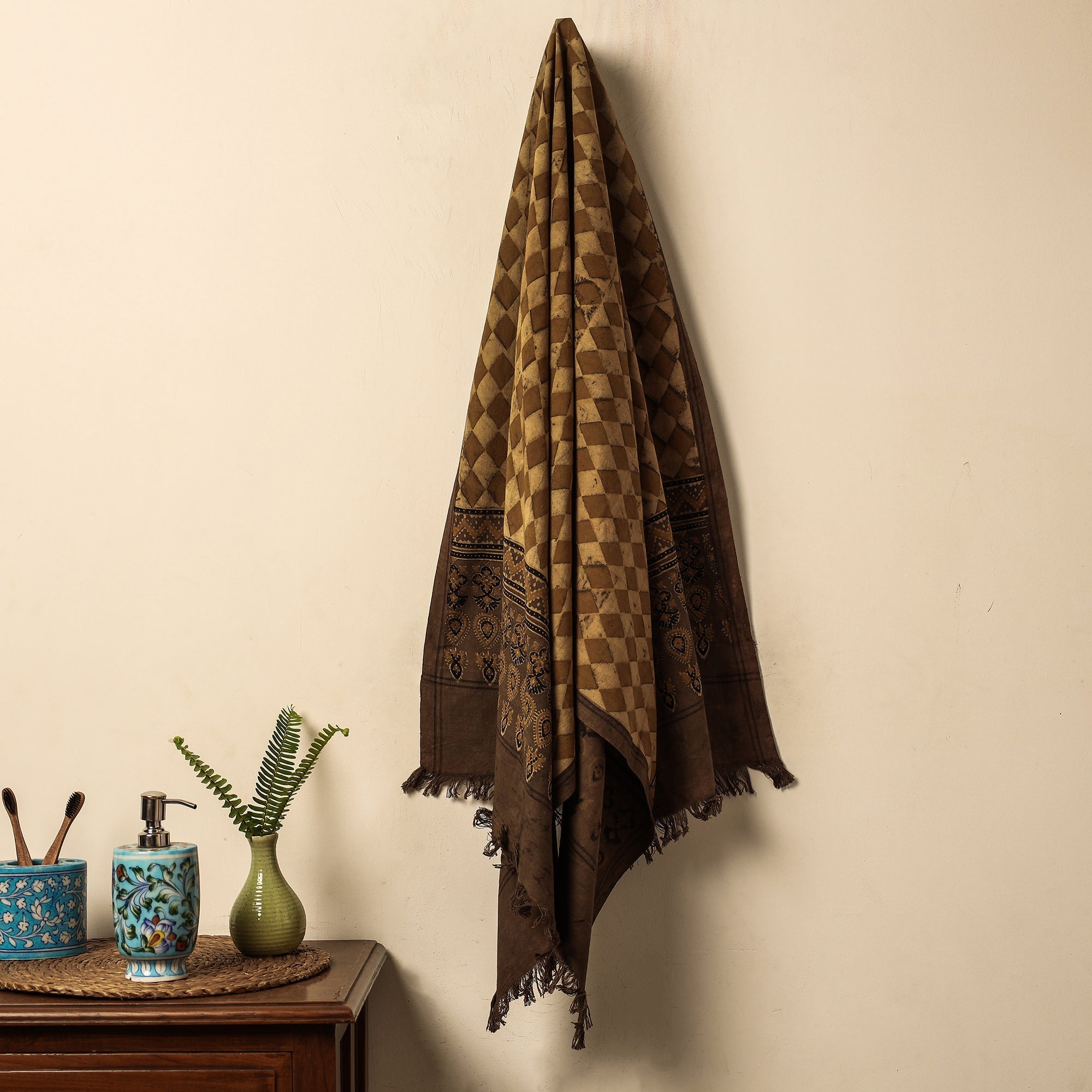 • Brown Block Print Cotton Ajrakh Handloom Towel