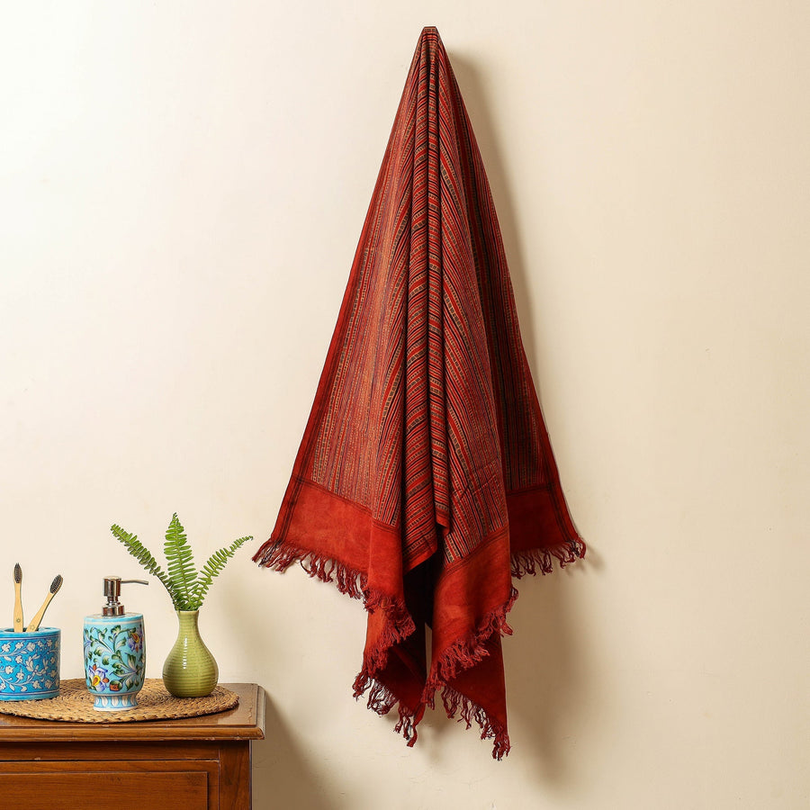 This lightweight absorbent red block print cotton ajrakh handloom towel is crafted from natural-dyed cotton with intricate block prints. Eco-friendly and durable its perfect for daily use whether at home or on the go. Designed with functionality and sustainability in mind this towel ensures comfort and style in your everyday essentials.