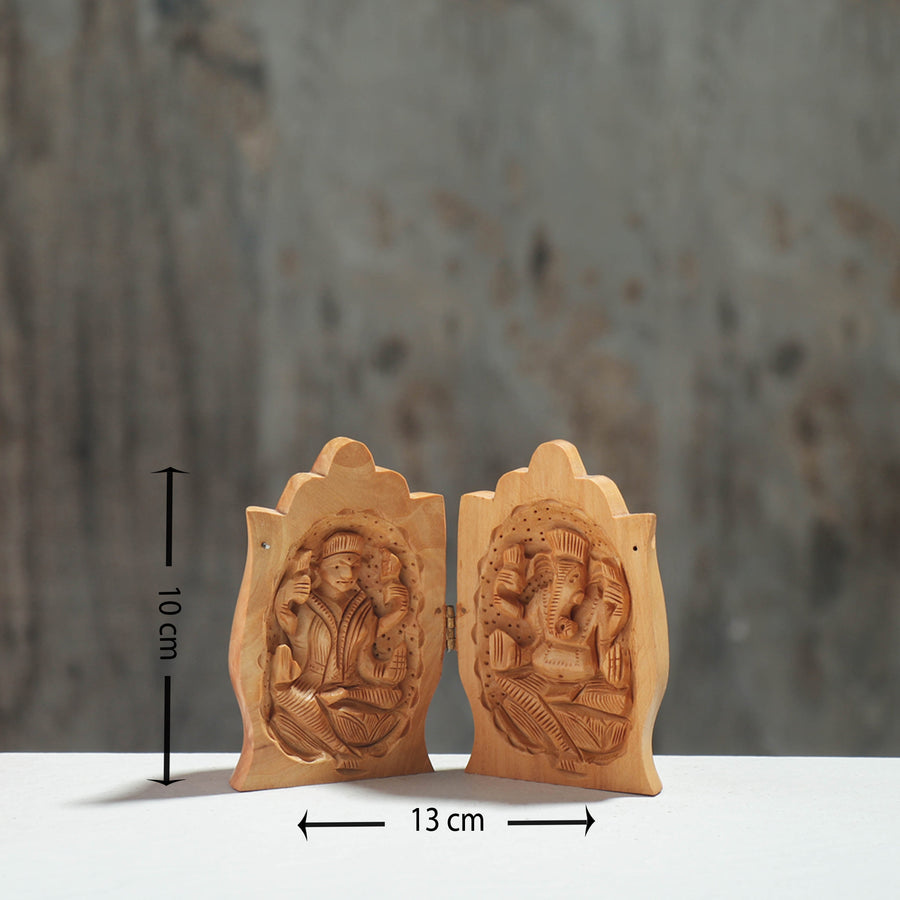 | Material | Fine carved wooden sculpture made of natural kadam wood handcarved by the master artisan Neeraj Kumar from Bahadurgarh, Haryana. |