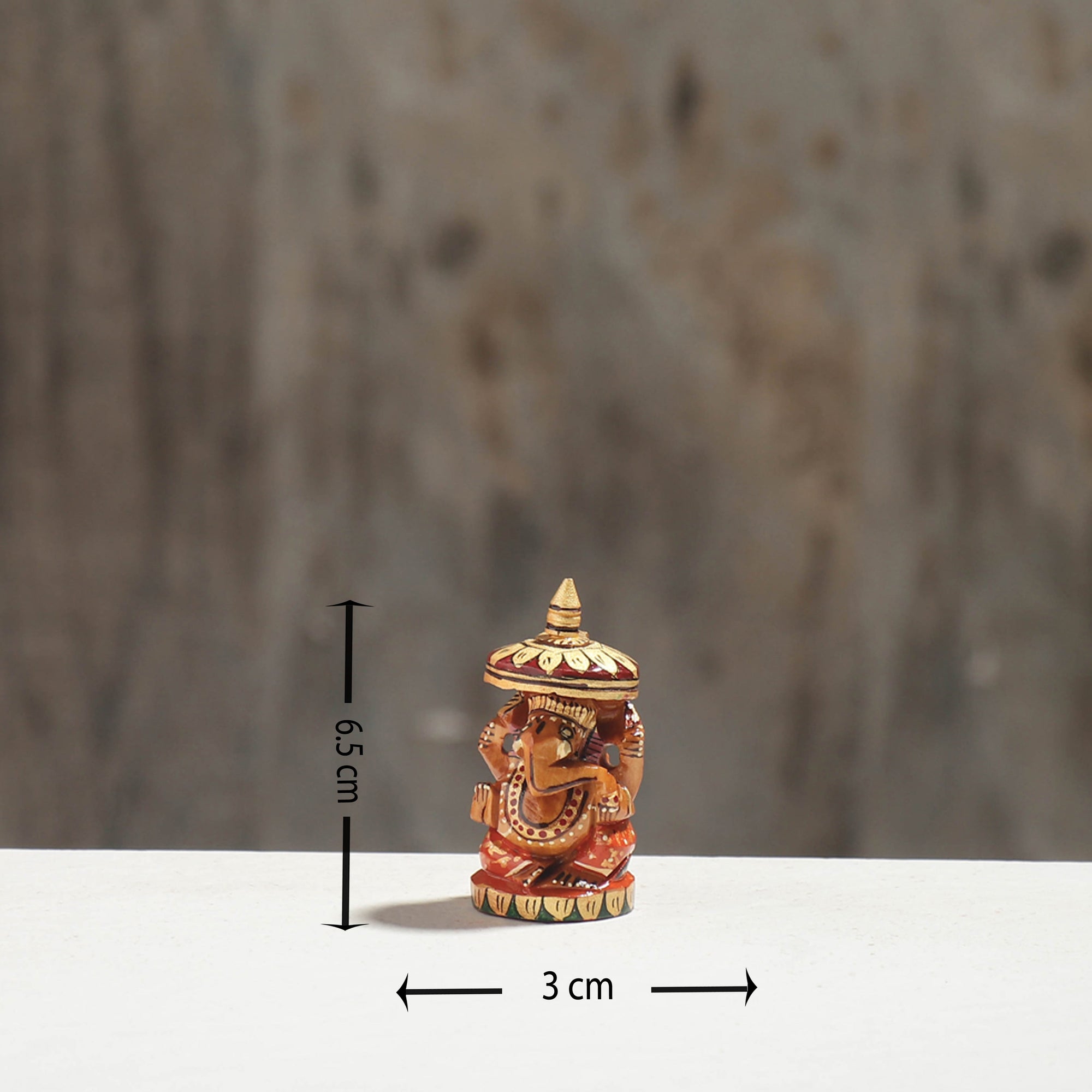 Lord Ganesha - Hand Carved Kadam Wood Handpainted Sculpture (1.5 in)