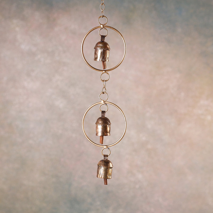 Made of high quality metal bell with copper coating, along with a few other metals and a leather belt. The unique melodic tones that emanate from Kachchh’s metal bells give voice to a centuries-old craft tradition that the Muslim Lohar community brought to Kachchh from Sindh, Pakistan.Today, the use of Kachchh’s traditional bells has expanded; they hang in entrance way are combined to make wind chimes, and are used as other forms of festive decoration.
