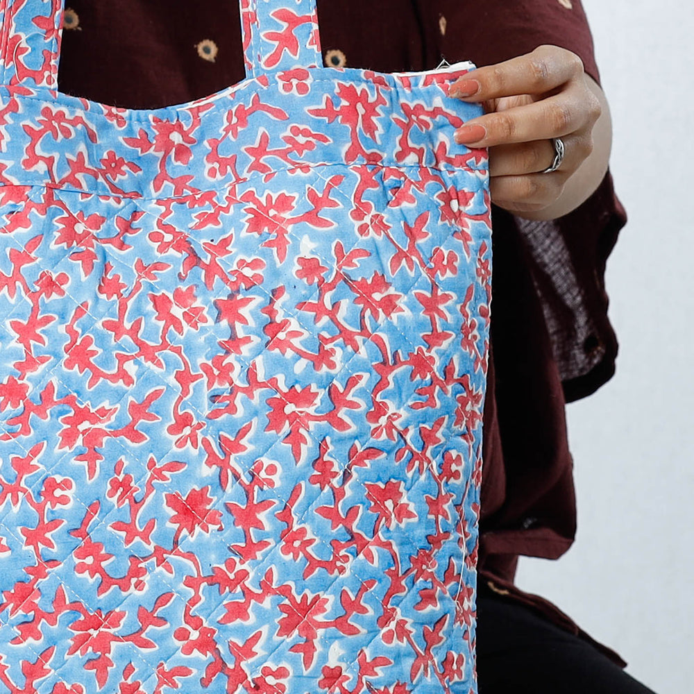 Fine quality blue handcrafted quilted sanganeri block printed shoulder bag made from pure cotton fabric. It has ample space to keep most of your essentials. The prints of Sanganer comprise delicate floral patterns. These flower motifs are generally known as 'Buttas'. Sanganeri is a printing technique originating from Sanganer, a village in the southern part of Jaipur, Rajasthan.