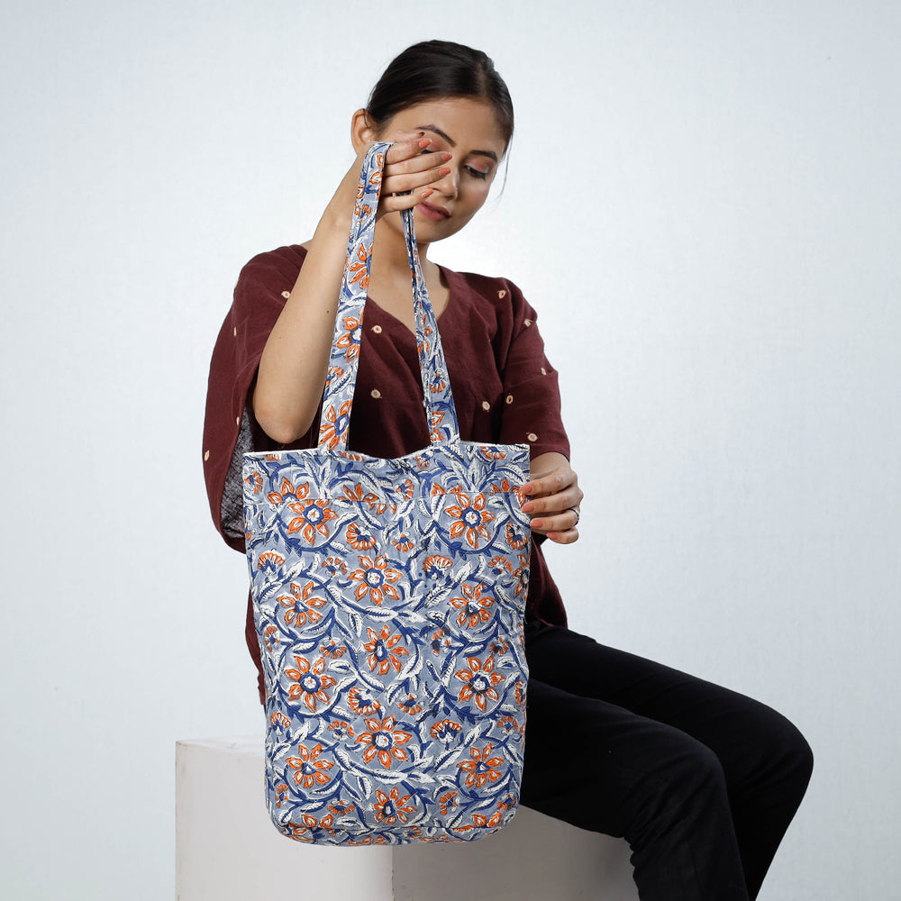 Fine quality grey handcrafted quilted sanganeri block printed shoulder bag made from pure cotton fabric. It has ample space to keep most of your essentials. The prints of Sanganer comprise delicate floral patterns. These flower motifs are generally known as 'Buttas'. Sanganeri is a printing technique originating from Sanganer, a village in the southern part of Jaipur, Rajasthan.