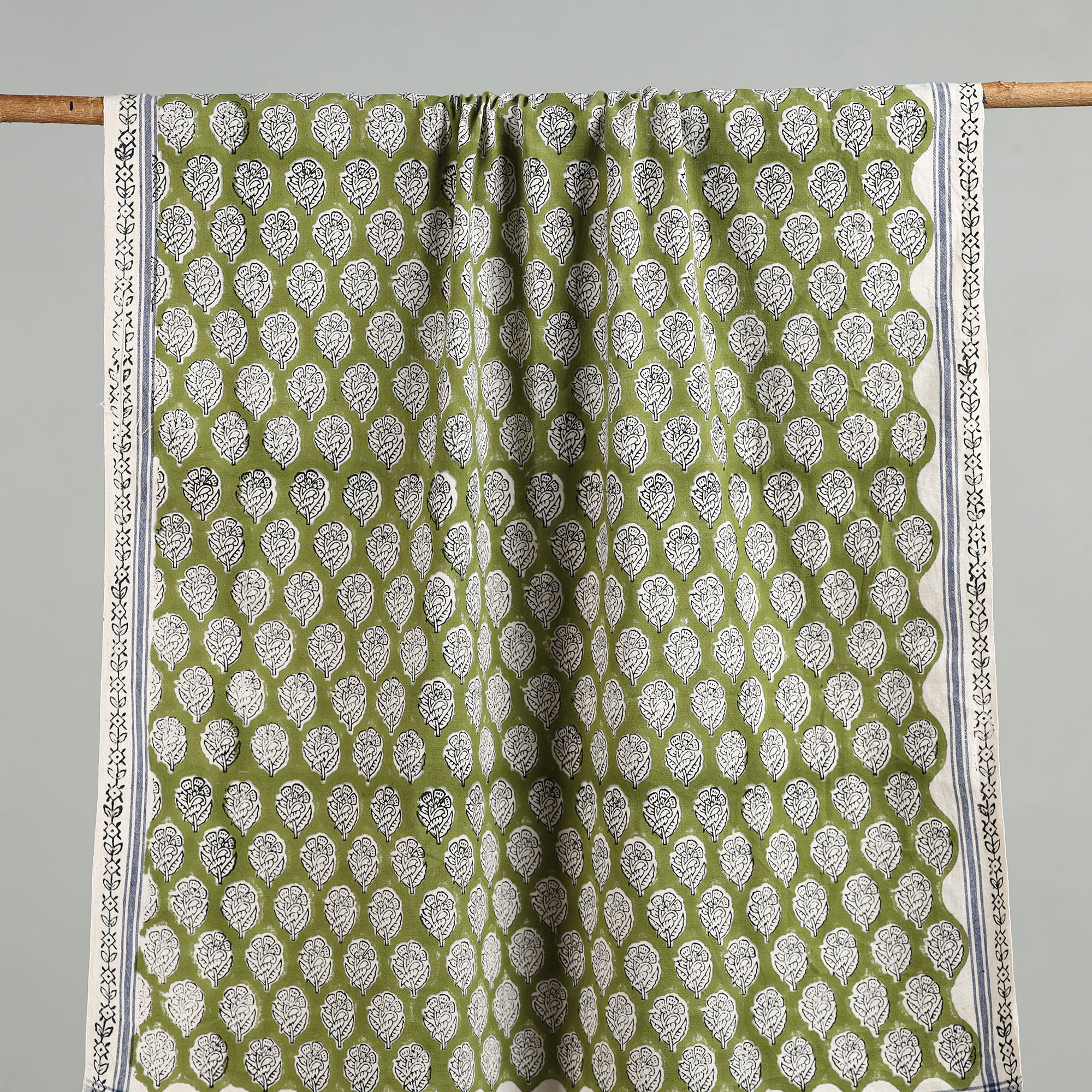 Fine quality green sanganeri hand block printed cotton towel. Sanganeri is a hand-block printing technique originating from Sanganer, a village in the southern part of Jaipur, Rajasthan. Bleed free VAT dyes used.