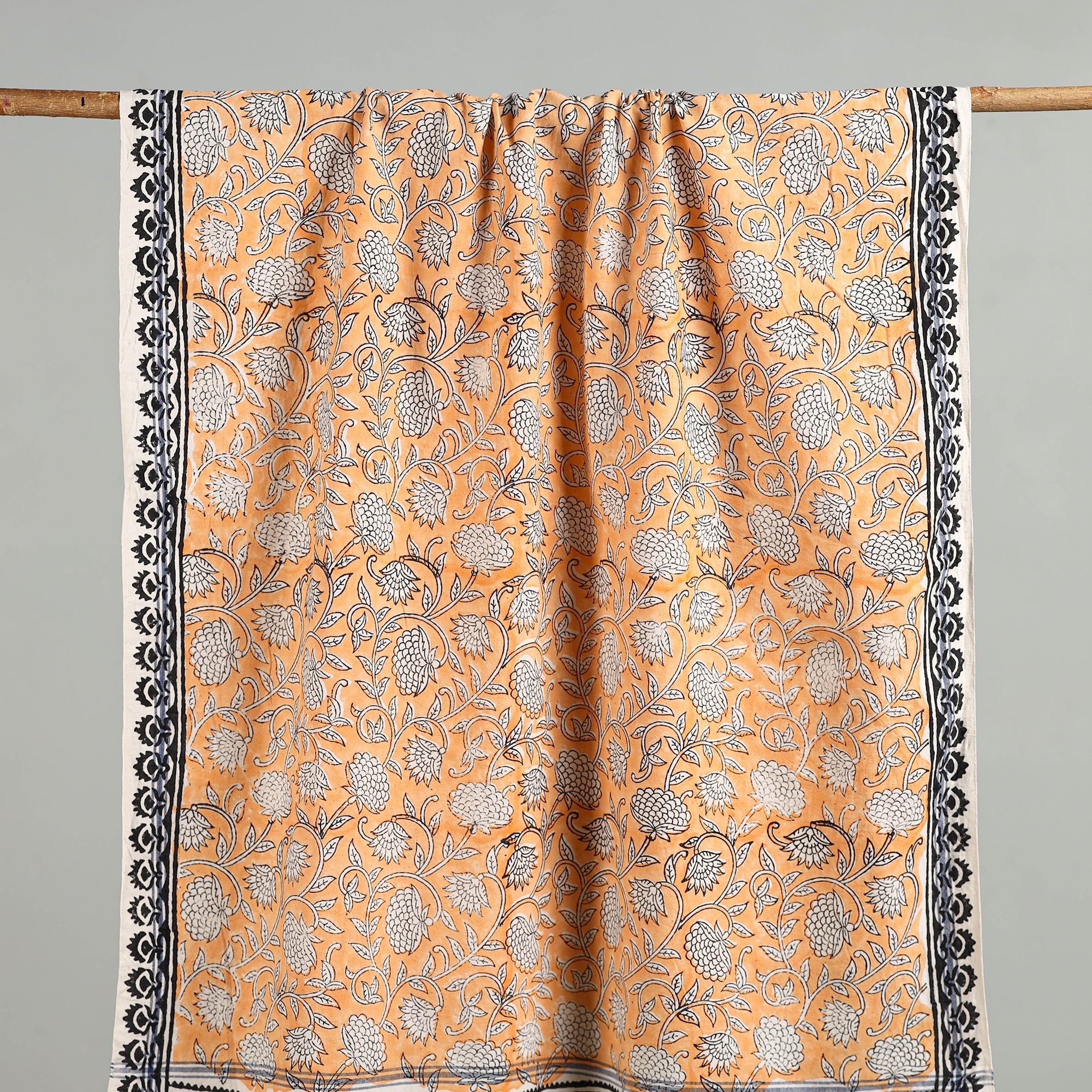 Fine quality peach sanganeri hand block printed cotton towel. Sanganeri is a hand-block printing technique originating from Sanganer, a village in the southern part of Jaipur, Rajasthan. Bleed free VAT dyes used.