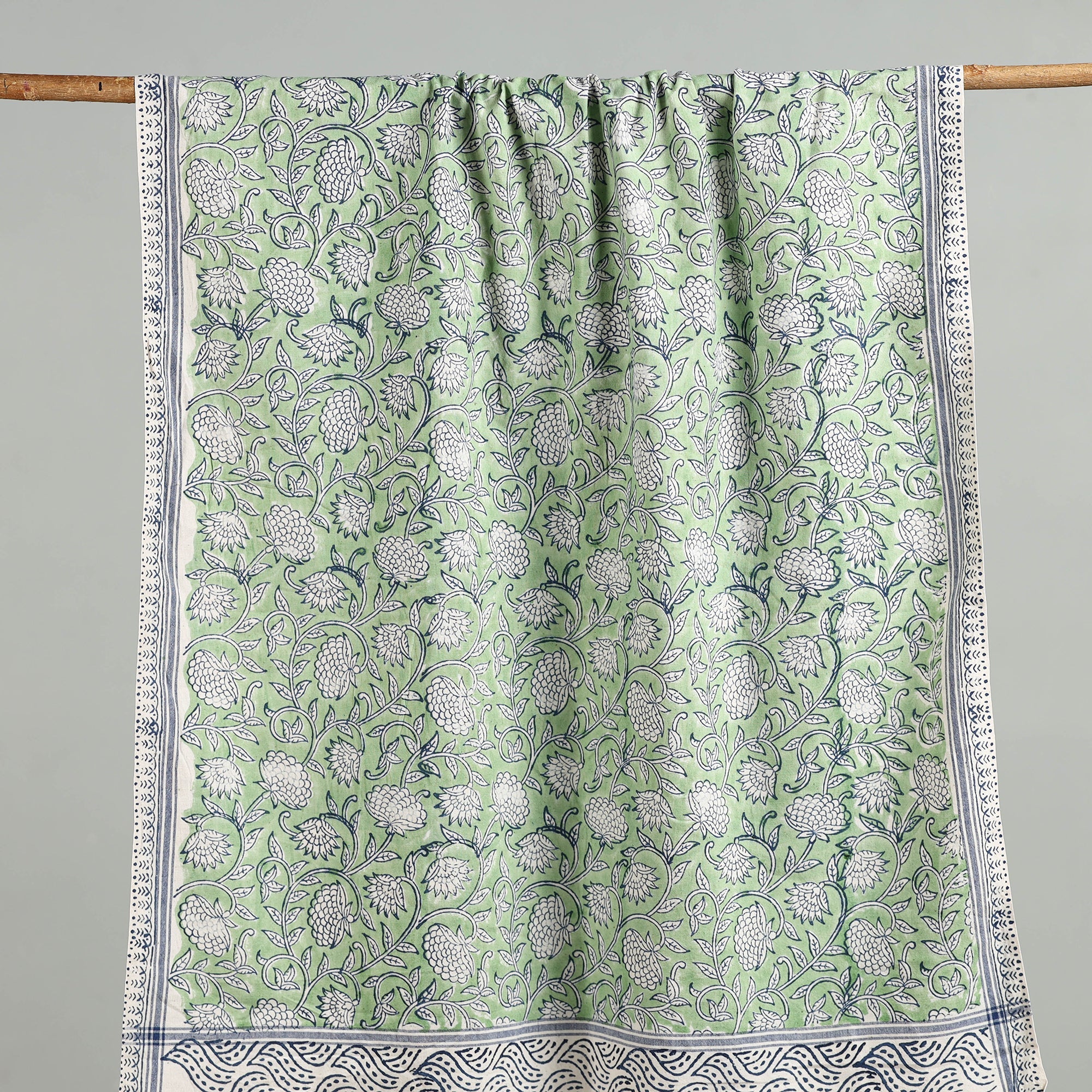 Fine quality green sanganeri hand block printed cotton towel. Sanganeri is a hand-block printing technique originating from Sanganer, a village in the southern part of Jaipur, Rajasthan. Bleed free VAT dyes used.