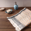 Fine quality peach sanganeri hand block printed cotton towel. Sanganeri is a hand-block printing technique originating from Sanganer, a village in the southern part of Jaipur, Rajasthan. Bleed free VAT dyes used.