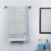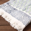 Fine quality green sanganeri hand block printed cotton towel. Sanganeri is a hand-block printing technique originating from Sanganer, a village in the southern part of Jaipur, Rajasthan. Bleed free VAT dyes used.
