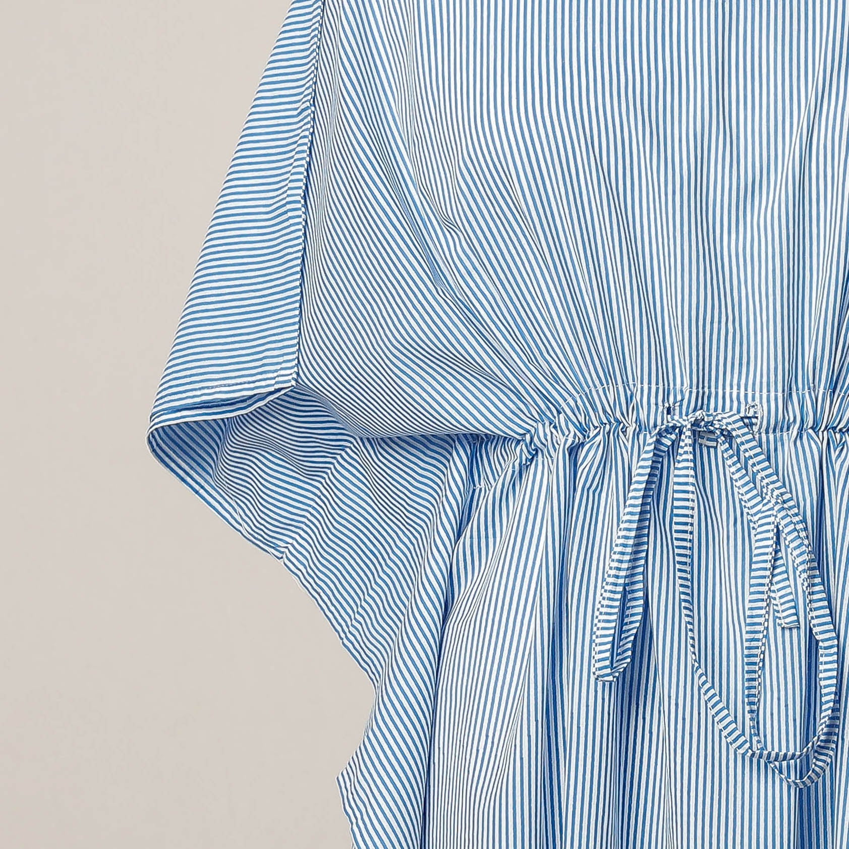 Fine quality sanganeri prints cotton kaftan with tie-up waist. A traditional kaftan or caftan is an knee-length garment with long, flowing sleeves. It has an adjustable drawstring waist. These loose-fitting cotton kaftans are enhanced by a soft touch and beautiful hand prints. This dress will allow you to move with ease and comfort. The drawstring waist tie will give you the freedom to customize the fit to suit your unique shape.