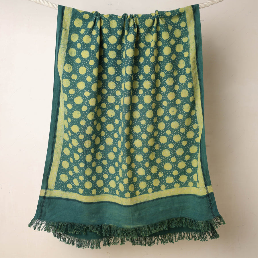 Fine quality green akola hand block printed pure handloom cotton towel made using natural dyes through traditional process of hand block printing practised in the Akola village of Rajasthan.