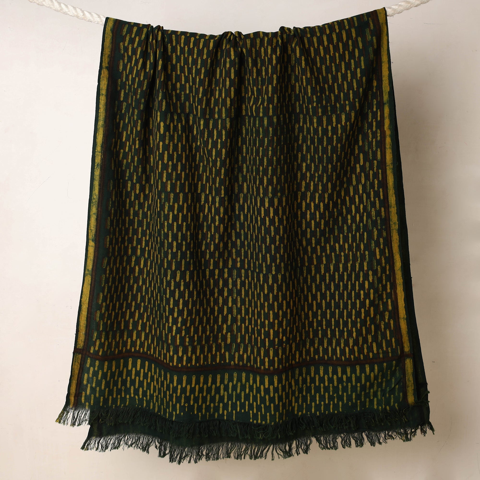 Fine quality green akola hand block printed pure handloom cotton towel made using natural dyes through traditional process of hand block printing practised in the Akola village of Rajasthan.