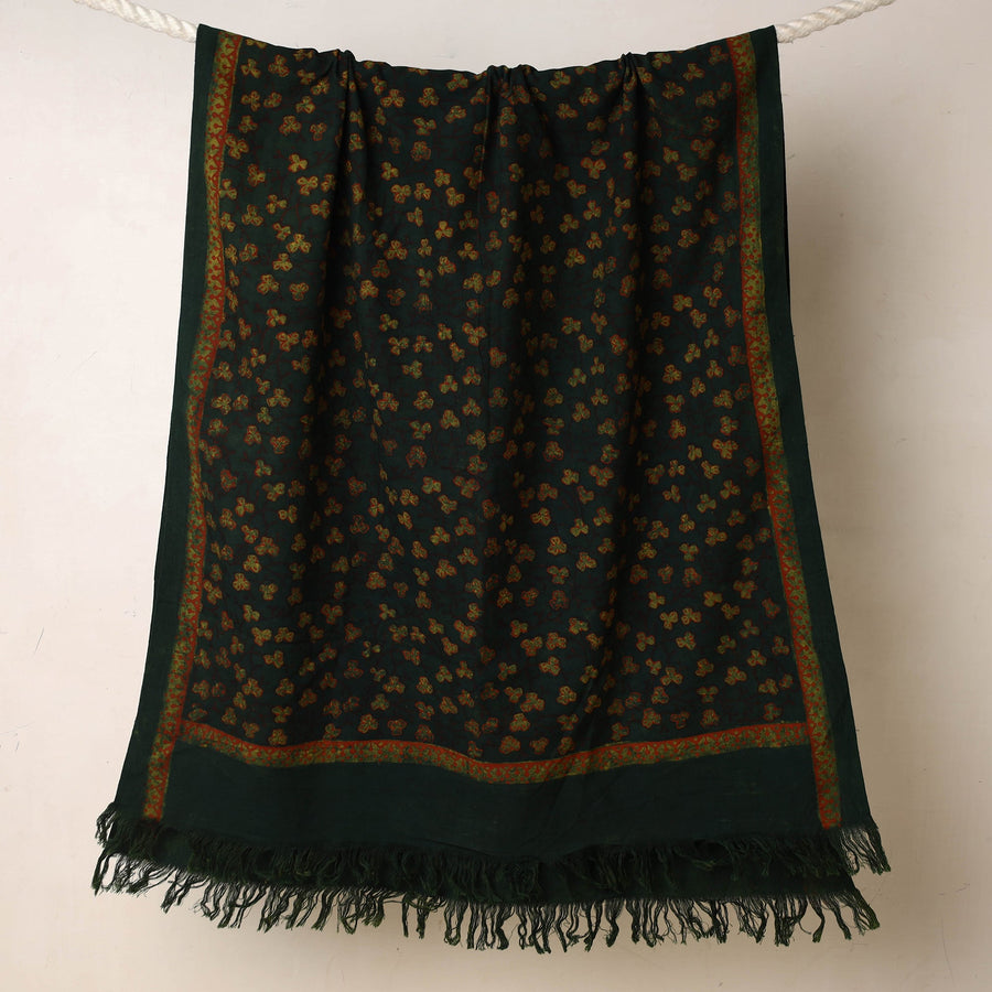 Fine quality green akola hand block printed pure handloom cotton towel made using natural dyes through traditional process of hand block printing practised in the Akola village of Rajasthan.