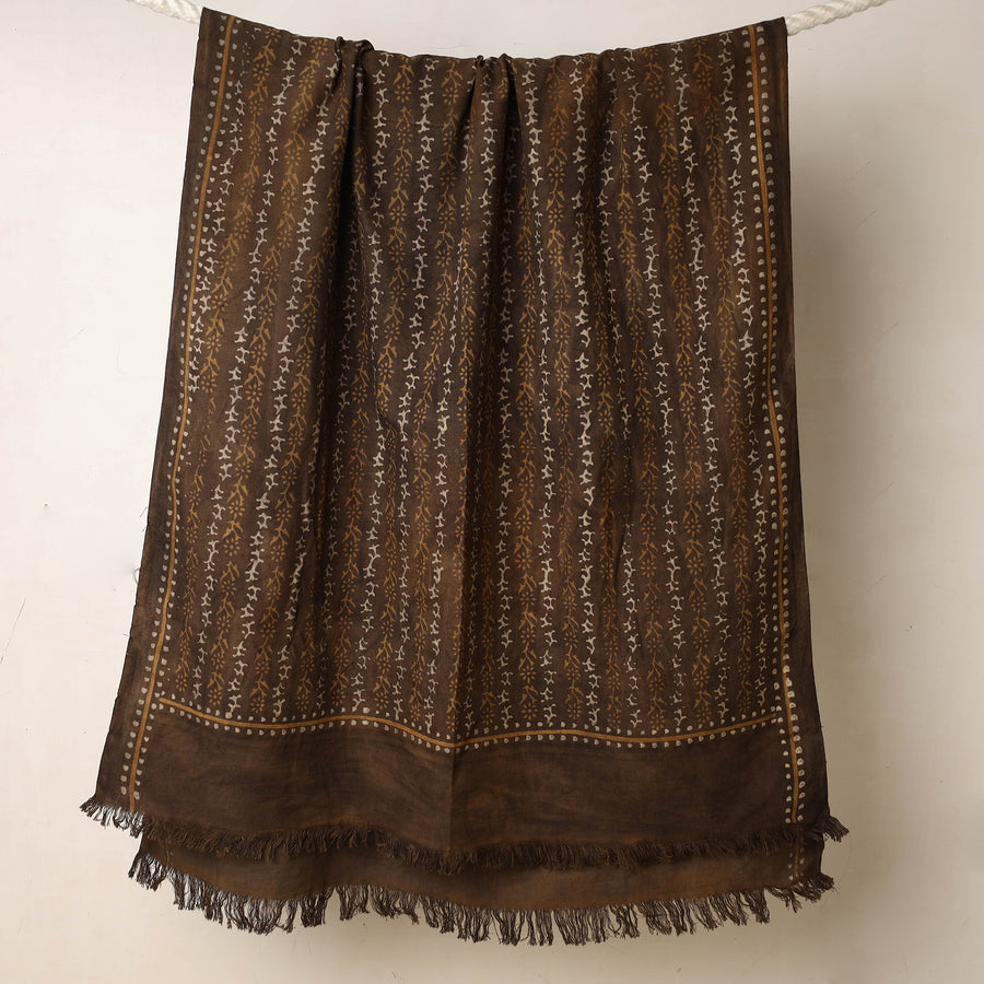 Fine quality brown akola hand block printed pure handloom cotton towel made using natural dyes through traditional process of hand block printing practised in the Akola village of Rajasthan.