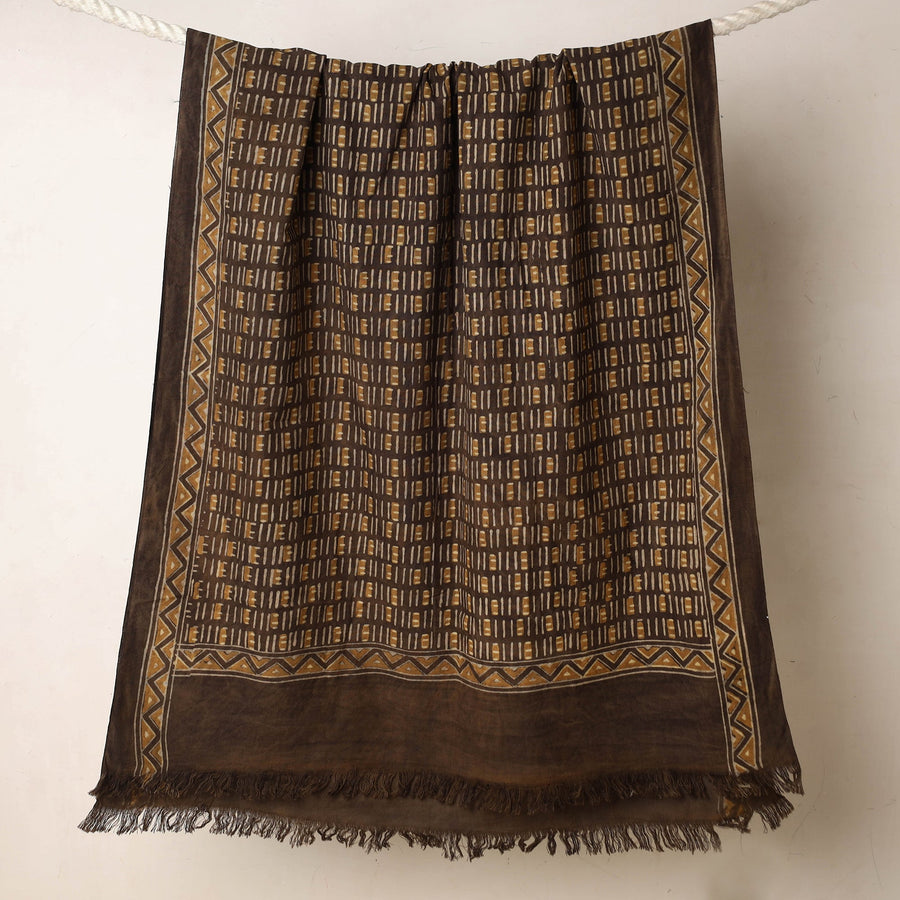 Fine quality brown akola hand block printed pure handloom cotton towel made using natural dyes through traditional process of hand block printing practised in the Akola village of Rajasthan.