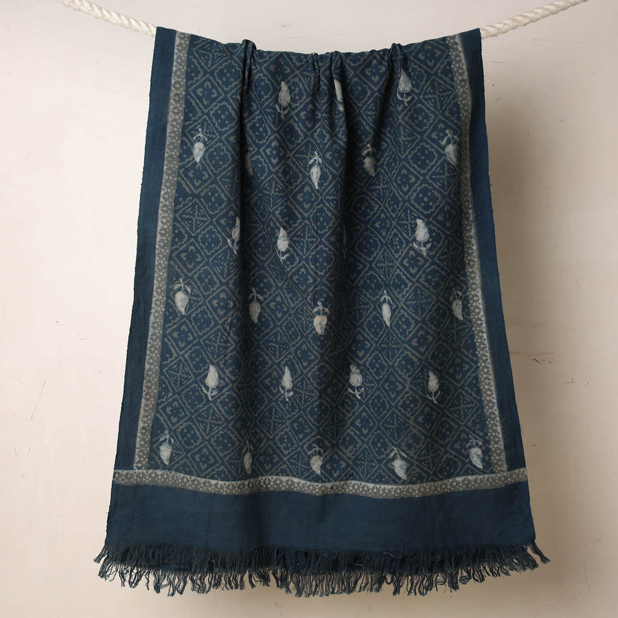 Fine quality blue akola hand block printed pure handloom cotton towel made using natural dyes through traditional process of hand block printing practised in the Akola village of Rajasthan.