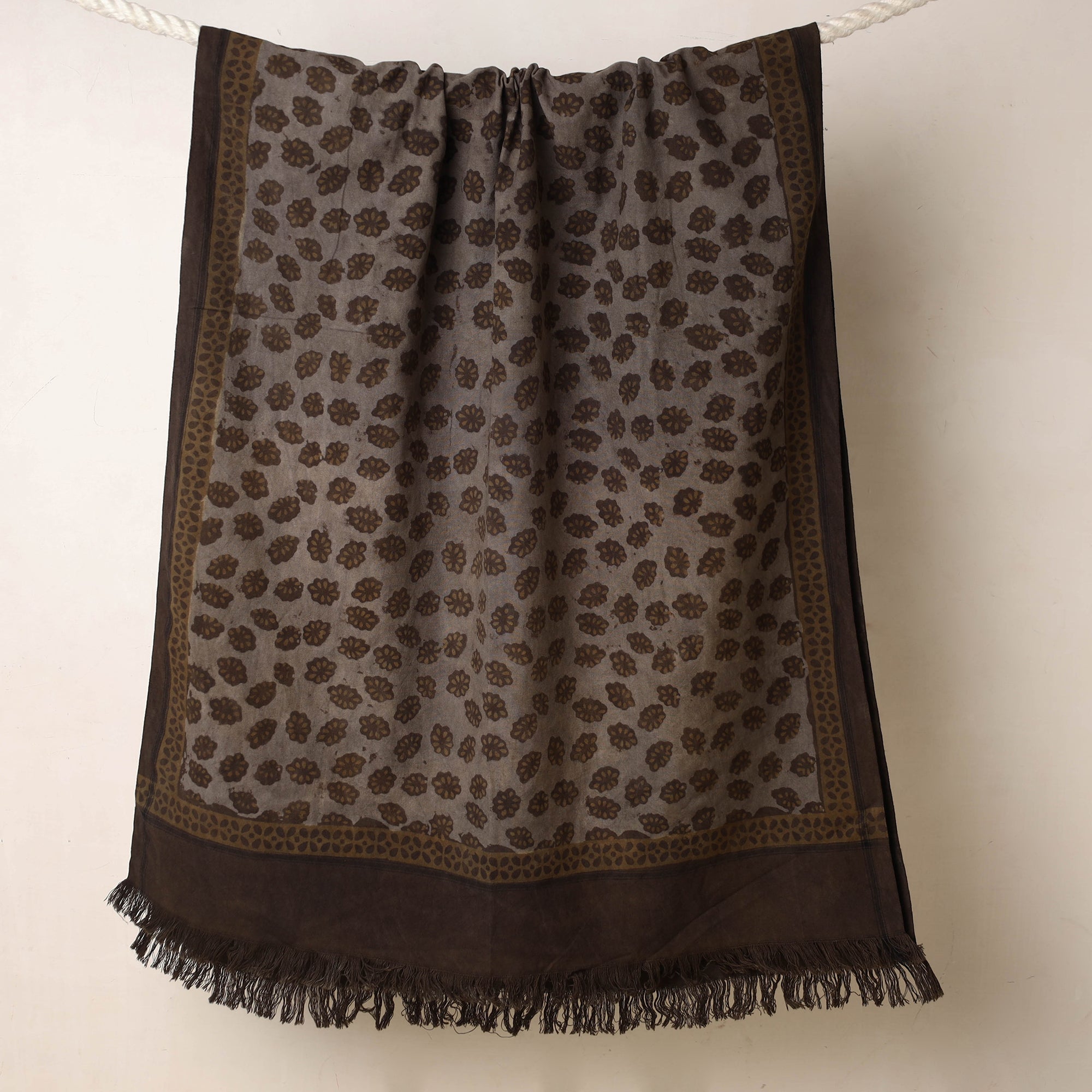 Fine quality brown akola hand block printed pure handloom cotton towel made using natural dyes through traditional process of hand block printing practised in the Akola village of Rajasthan.