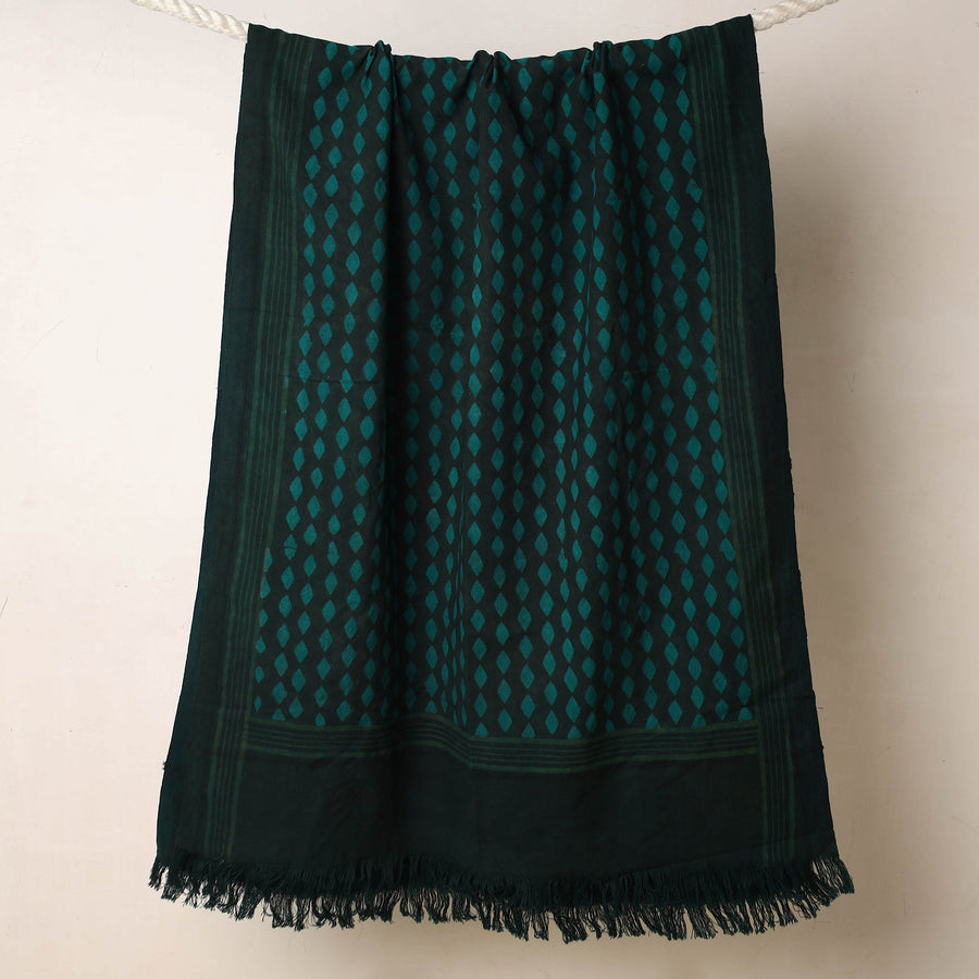 Fine quality green akola hand block printed pure handloom cotton towel made using natural dyes through traditional process of hand block printing practised in the Akola village of Rajasthan.