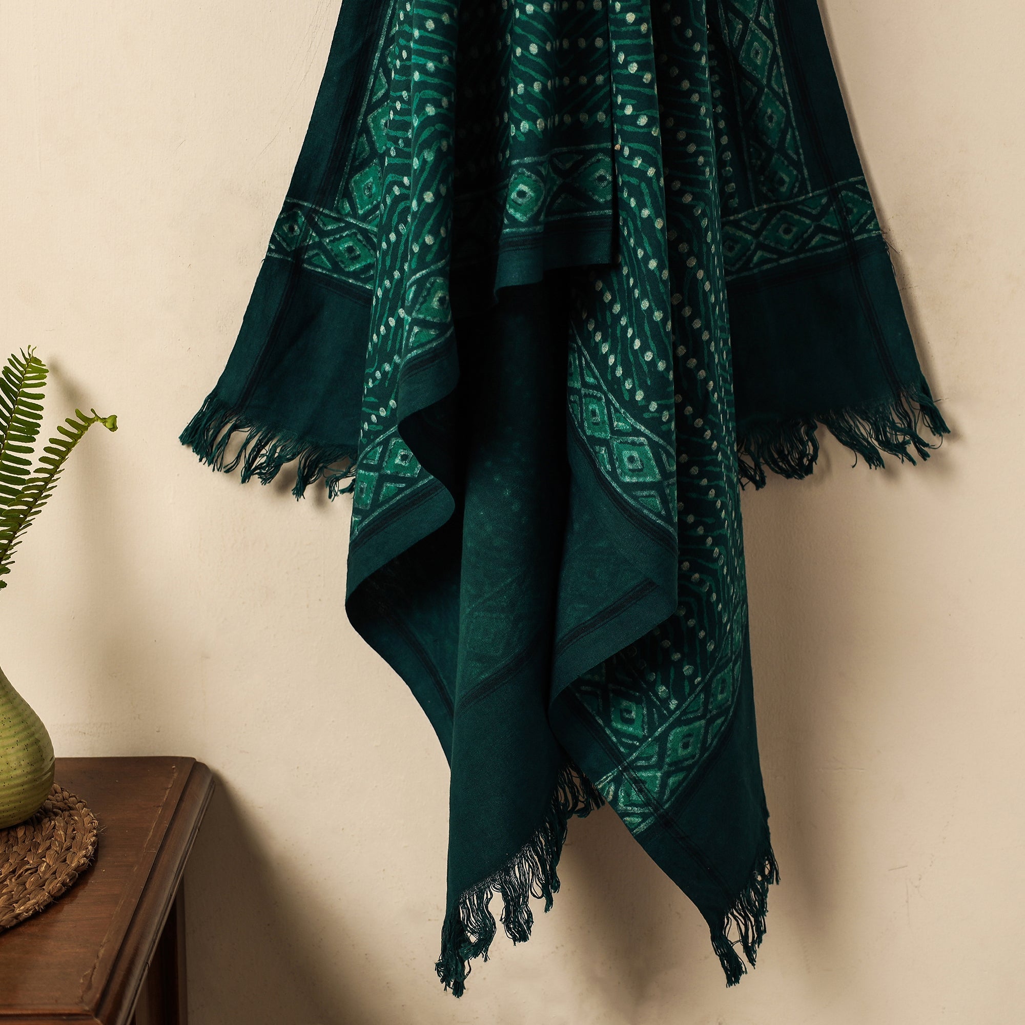 Fine quality green akola hand block printed pure handloom cotton towel made using natural dyes through traditional process of hand block printing practised in the Akola village of Rajasthan.