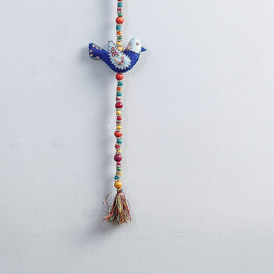 | Material | Handmade felt and beadwork wall hanging. This handmade hanging will be spectacular as Diwali decor to be placed anywhere in the house. It's contrast coloring accentuates the beauty of your home. |