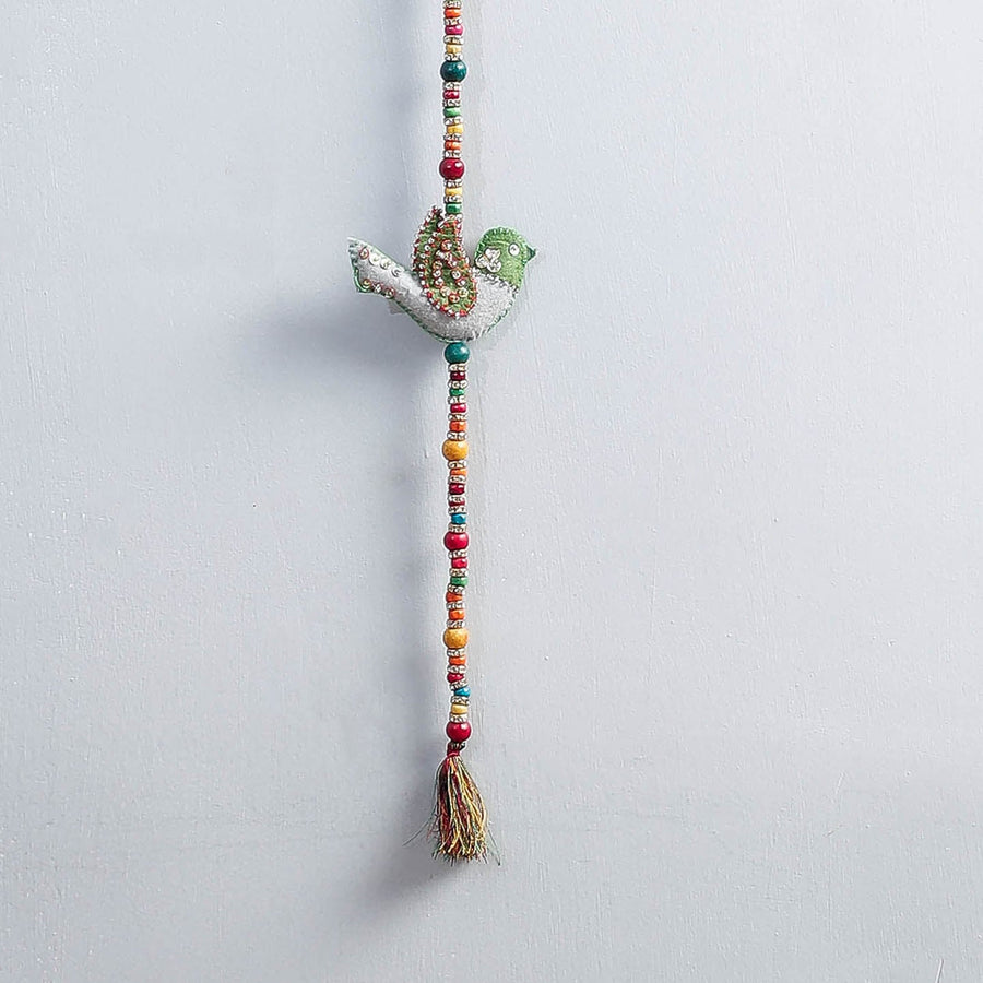 | Material | Handmade felt and beadwork wall hanging. This handmade hanging will be spectacular as Diwali decor to be placed anywhere in the house. It's contrast coloring accentuates the beauty of your home. |