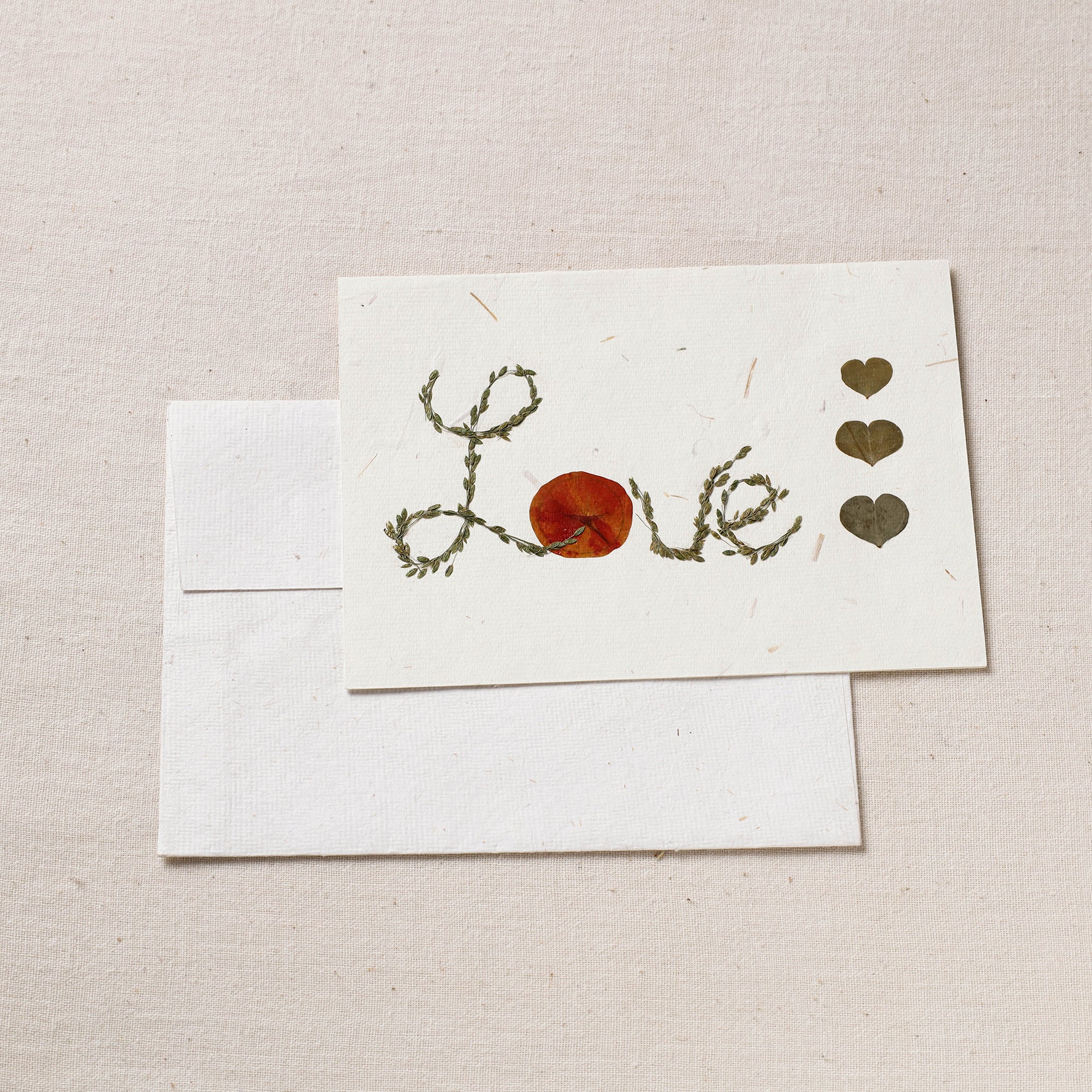 Write your words of love and joy in this gorgeous handmade flower art handmade paper gift card. It is individually handcrafted and has one a envelope for card. Shradhanjali captures and preserves the unique quality of each flower, grass or leaf in their intricately worked pressed flower range.