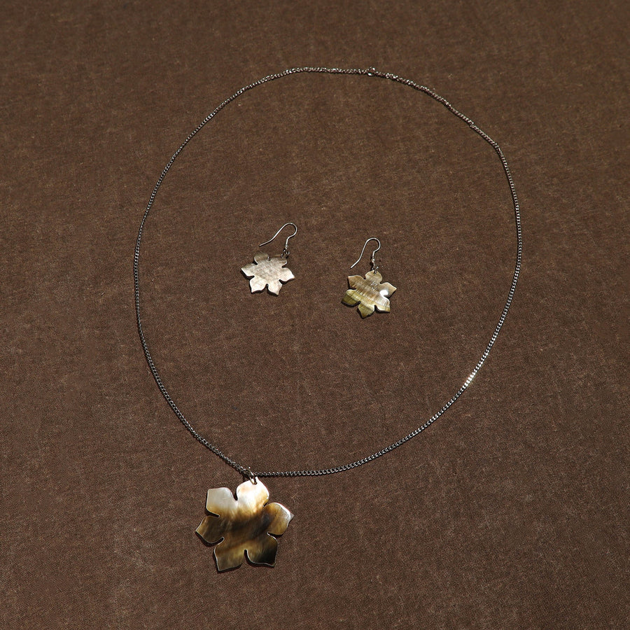 Add timeless elegance to your look with this handcrafted brown seashell necklace set. Made using authentic seashell craft techniques the set includes a beautiful necklace and matching earrings. Each piece reflects the artistry of sustainable seashell jewelry blending traditional craftsmanship with modern designs.